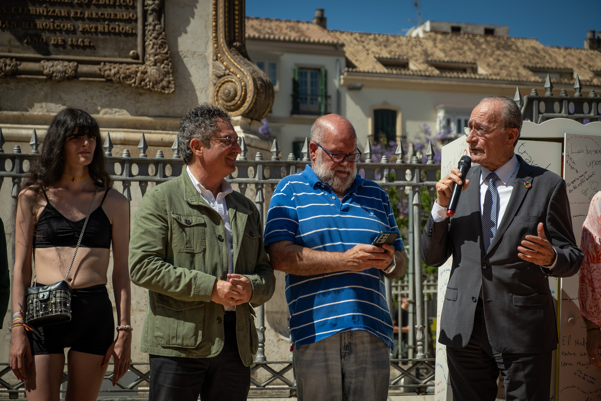 El alcalde de Málaga, Francisco de la Torre, junto al concejal delegado Derechos Sociales, Francisco Cantos, ha asistido hoy a la concentración y lectura de manifiesto con motivo del Día Internacional contra la Homofobia, la Transfobia y la Bifobia (LGTBIfobia) que ha tenido lugar en la plaza de la Merced. El acto ha sido organizado por la Federación Andalucía Diversidad, una entidad que forma parte de la Agrupación de Desarrollo LGTBI impulsada por el Ayuntamiento junto a otras entidades como Asociación Juntos Todos por la Igualdad, Apoyo Positivo, Colegandalus y ASIMA. En paralelo, desde esta mañana y durante todo el fin de semana, la bandera LGTBI permanecerá izada en el mástil situado junto a la fachada del Consistorio. ¿ Desde el año 2020, el Ayuntamiento de Málaga cuenta con su primer Plan Municipal de Diversidad Sexual, Familiar y de Género, en el que se conciben a las ciudades como espacios fundados por la diversidad, y con el que se trabaja para conseguir la prevención de estas actitudes LGTBIfóbicas y la creación de entornos seguros y libres de discriminación.