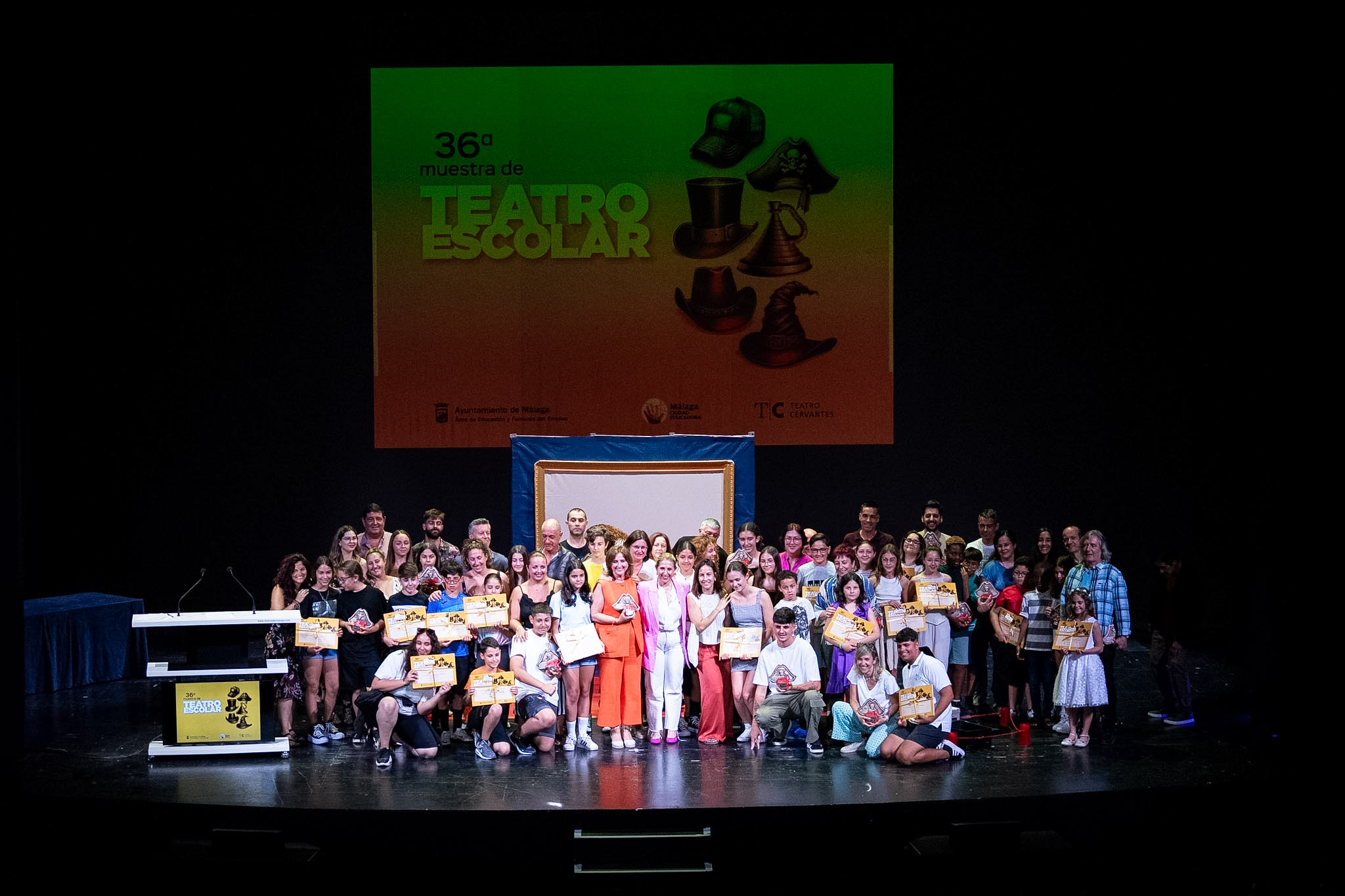 EL TEATRO CERVANTES ACOGE EL ACTO DE CLAUSURA DE LA 36ª MUESTRA DE TEATRO ESCOLAR 4/6/2024 Imagen En esta edición han participado 567 escolares de 23 centros educativos que han puesto en escena 25 obras La clausura ha contado con la compañía La Líquida Teatro que ha representado la obra ‘Museum. La historia del arte para niños y niñas’ Documentos NOTA INFORMATIVA.pdf 122,90 KB kb Galería de imágenes