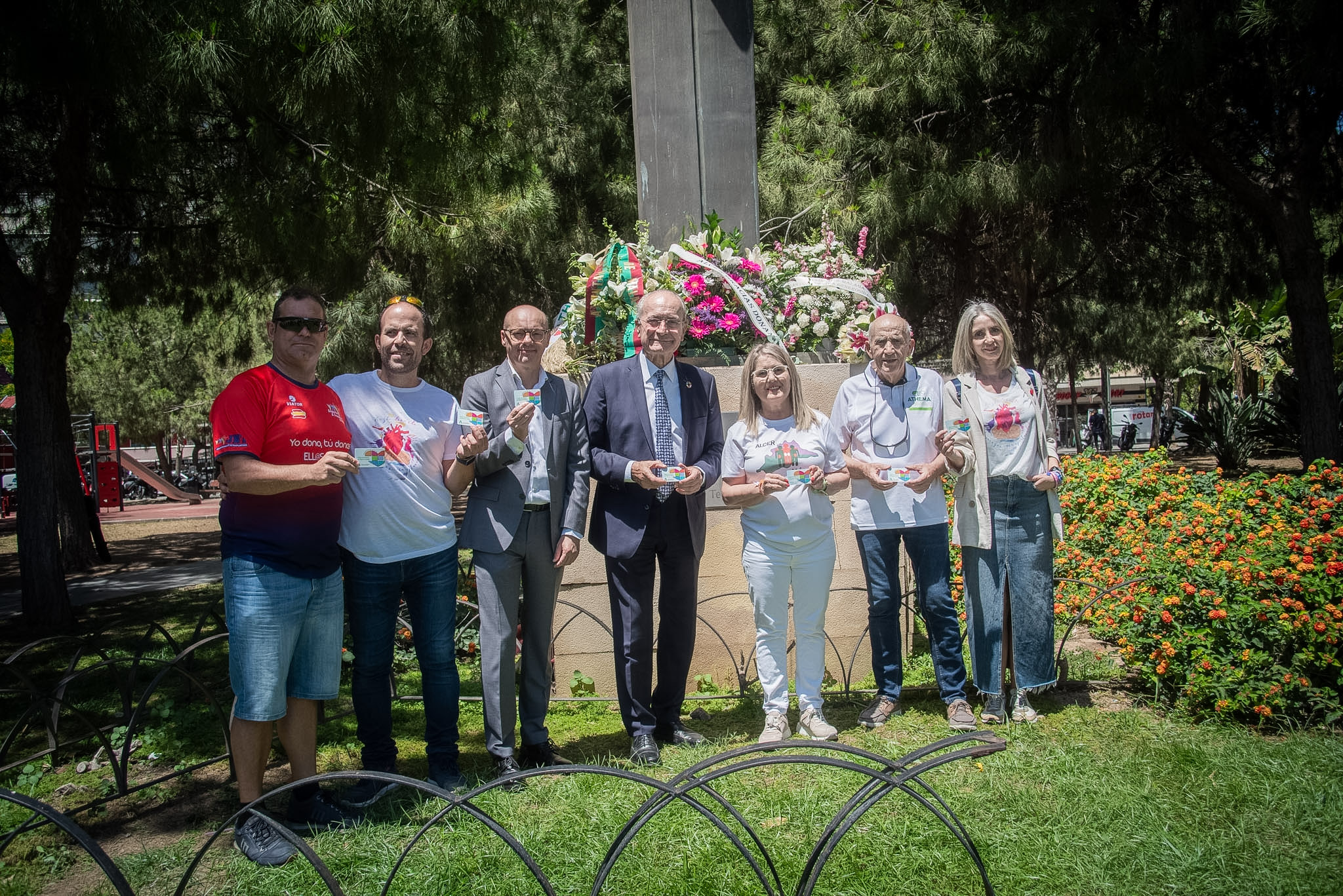 El acto de homenaje y ofrenda floral con motivo del Día del Donante que ha tenido lugar ante el monumento al Donante de Órganos y Tejidos , ubicado en la plaza de la Solidaridad