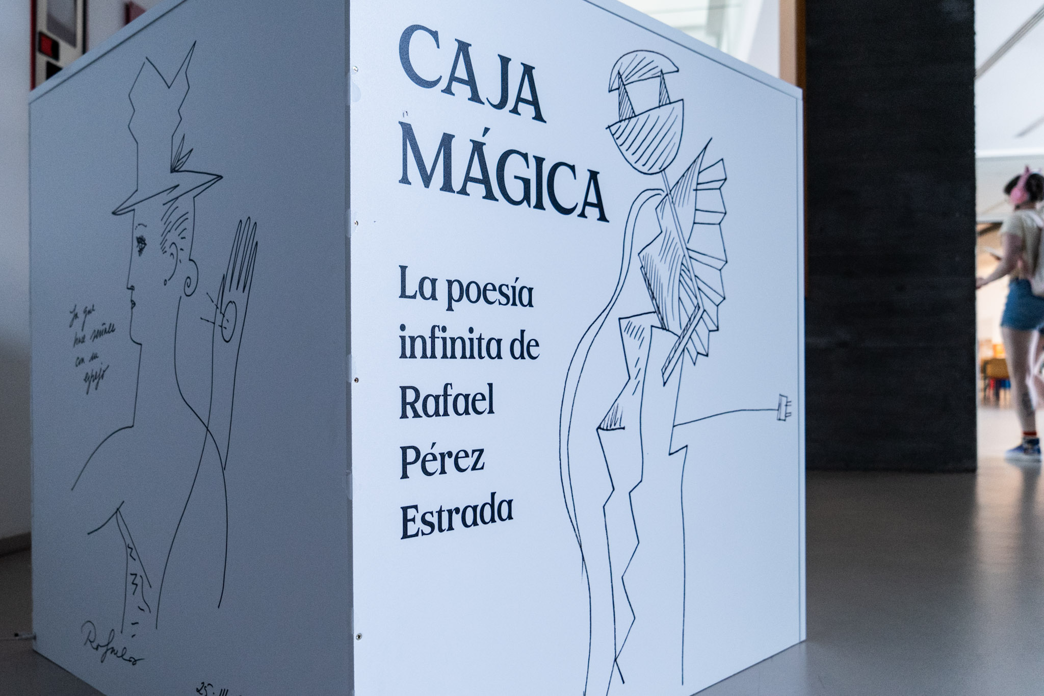La Fundación Rafael Pérez Estrada, en colaboración con las Bibliotecas Municipales de Málaga, ha instalado en la entrada de la BMP ‘Miguel de Cervantes’ el dispositivo artístico ‘Caja mágica: la poesía infinita de Rafael Pérez Estrada’. Esta pieza formará parte del equipamiento permanente de la biblioteca e invita a descubrir el universo artístico del autor malagueño a través del uso de espejos y luces emulando una sensación de infinito con parte de la obra literaria de Rafael Pérez Estrada.
