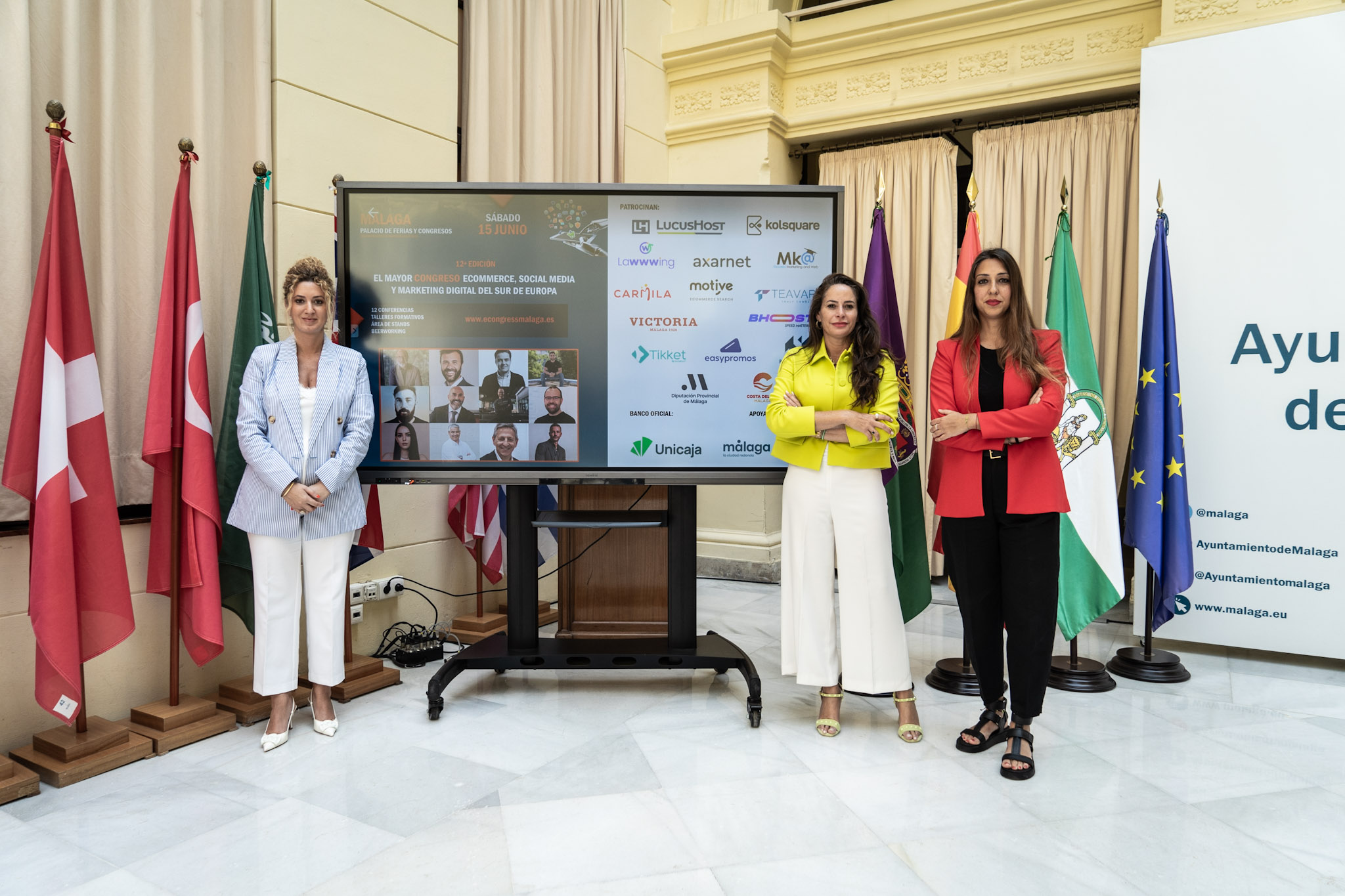 La concejala delegada de Innovación, Digitalización y Captación de Inversiones, Alicia Izquierdo, la diputada de Empleo y Formación de la Diputación de Málaga, María del Carmen Márquez, y la directora del eCongress Málaga, Beatriz Galea, han presentado la 12ª edición de ‘eCongress Málaga’ que se celebrará el sábado 15 de junio en el Palacio de Ferias y Congresos de Málaga (Fycma).