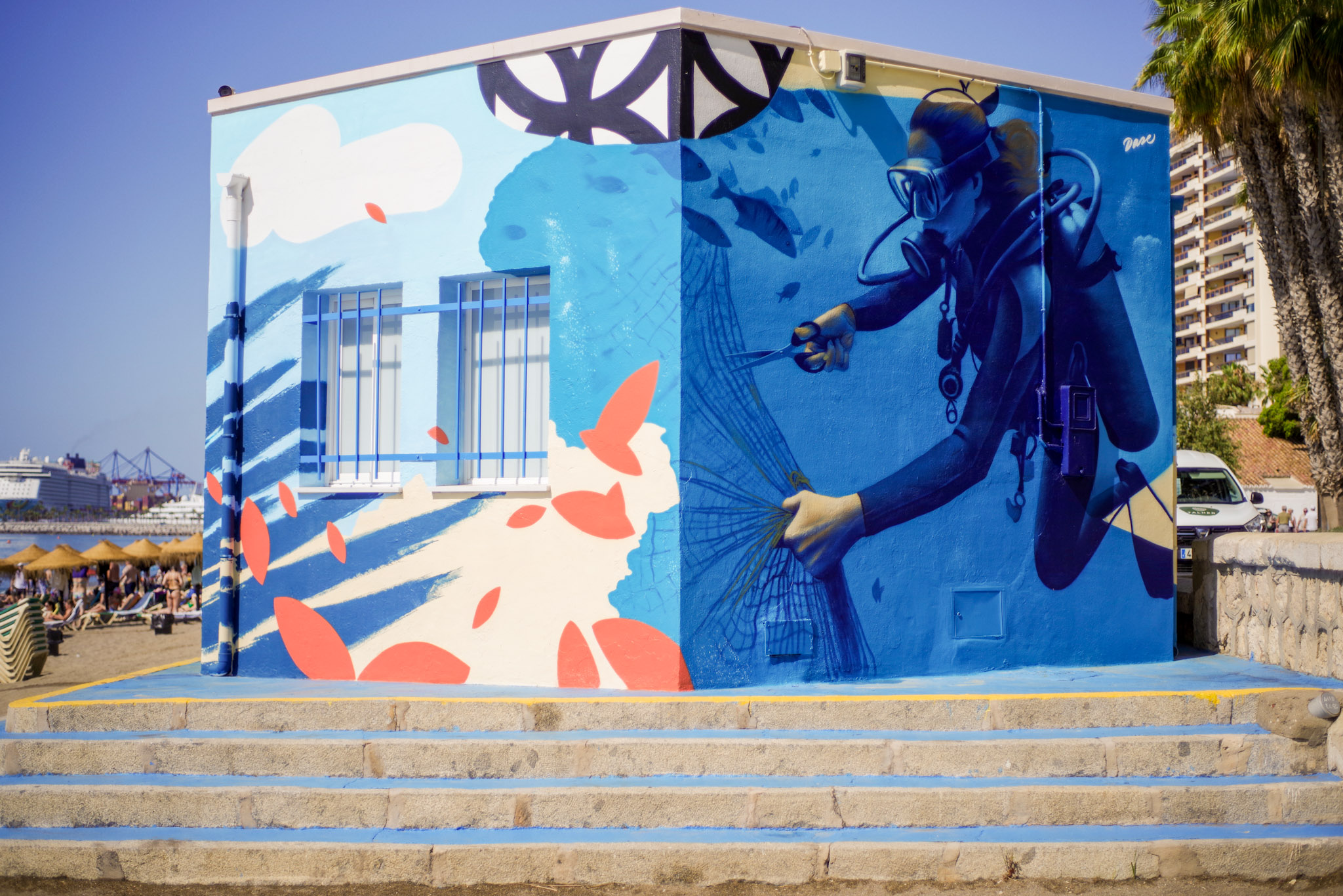 Como parte del premio ‘Mayor Impacto Ciudadano’, Ecovidrio ha decorado el módulo de la Playa de la Malagueta con un mural realizado por el artista Dase y su equipo, símbolo del esfuerzo y la concienciación de todos los malagueños.