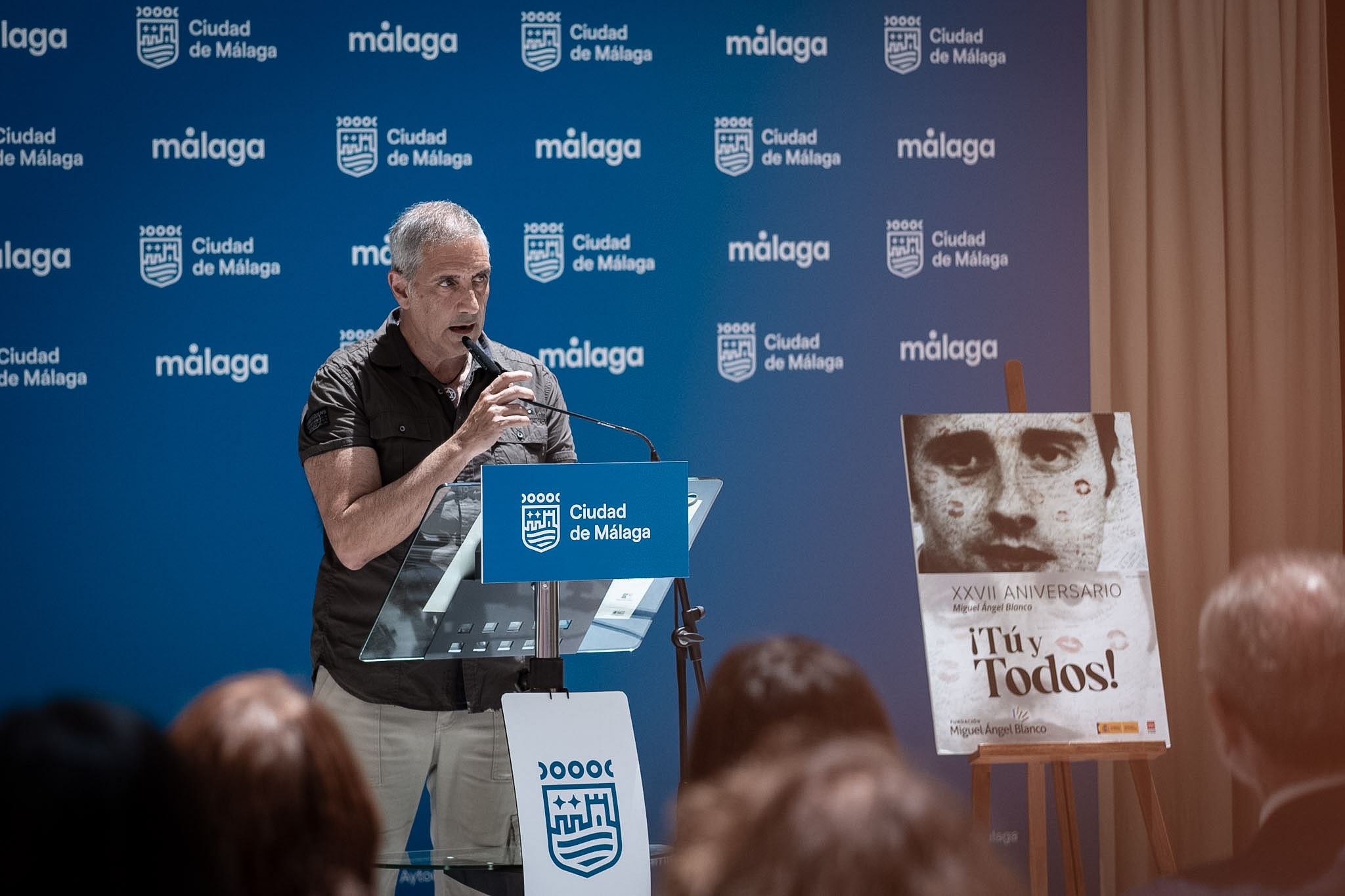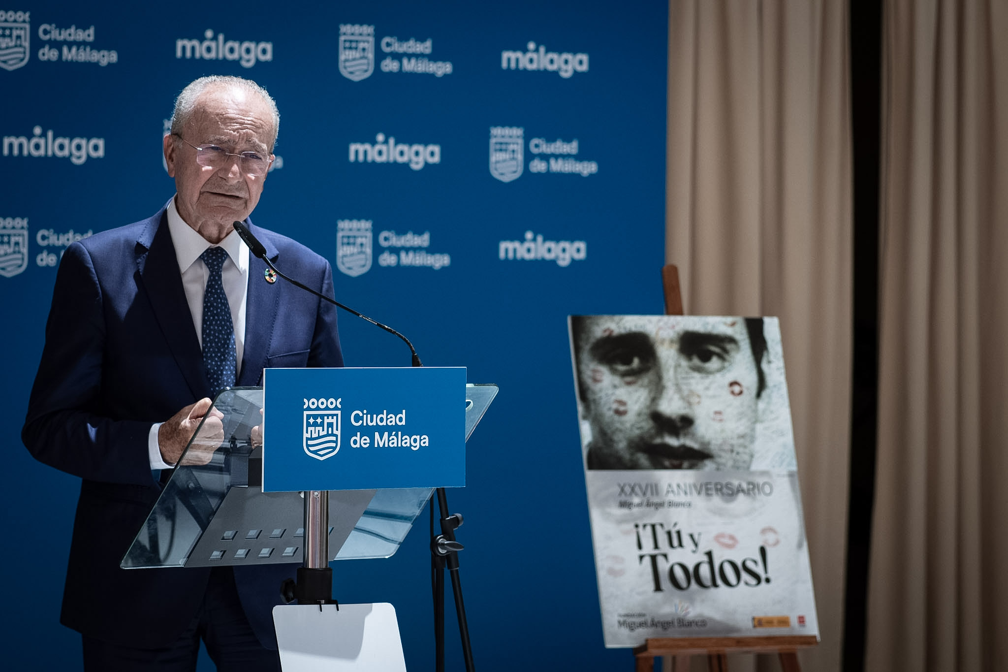El alcalde de Málaga, Francisco de la Torre, junto a miembros de la Corporación Municipal, ha asistido esta mañana a la lectura del manifiesto con motivo del XXVII aniversario del asesinato de Miguel Ángel Blanco, organizada por la fundación que lleva su nombre. El coordinador de Movimiento contra la Intolerancia, Valentín González, ha sido el encargado de leer el manifiesto en el Patio de Banderas del Ayuntamiento.