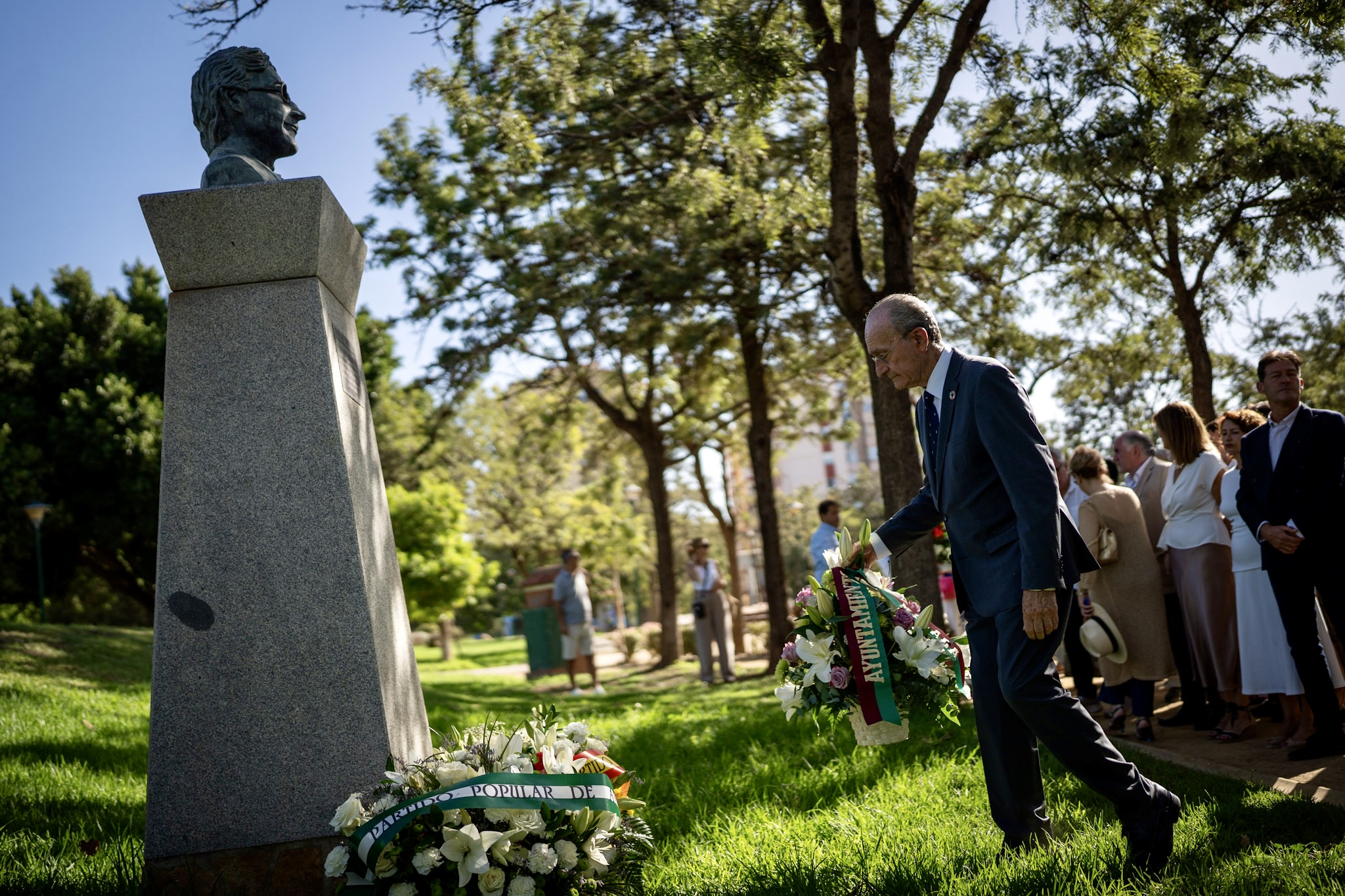 El alcalde de Málaga, Francisco de la Torre, junto a otros ediles de la Corporación municipal, ha participado en el homenaje a José María Martín Carpena con motivo del XXIV aniversario de su asesinato cometido por la banda terrorista ETA. Ha sido junto al busto dedicado al que fuera concejal del Ayuntamiento de Málaga, en el Parque Huelin.