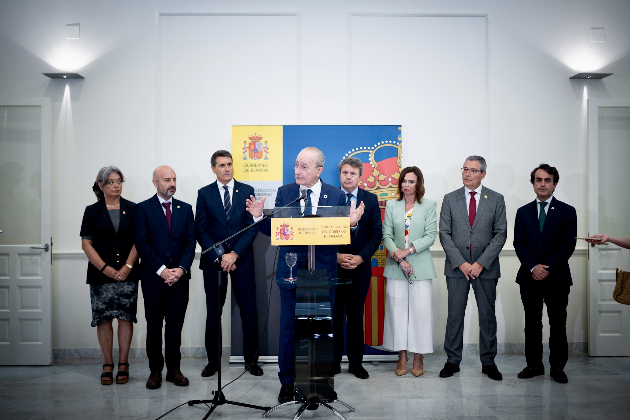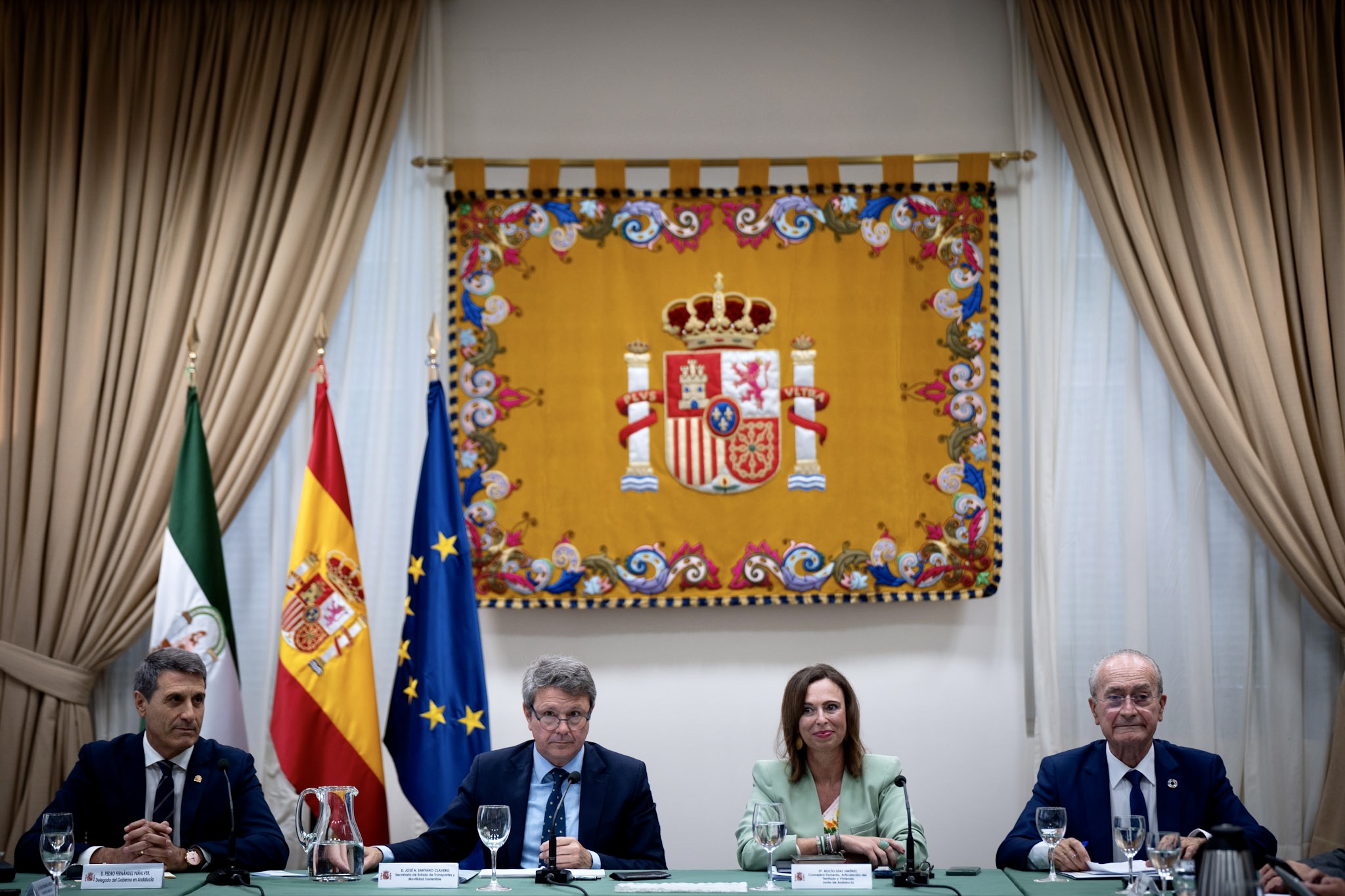 El alcalde de Málaga, Francisco de la Torre, ha participado esta mañana en el primer encuentro de la mesa de trabajo sobre movilidad de la Costa del Sol, junto con el secretario de Estado de Transportes y Movilidad Sostenible, José Antonio Santano; la consejera de Fomento, Articulación del Territorio y Vivienda, Rocío Díaz; el presidente de la Diputación, Francisco Salado; y alcaldes de municipios de la Costa del Sol y de Cádiz.