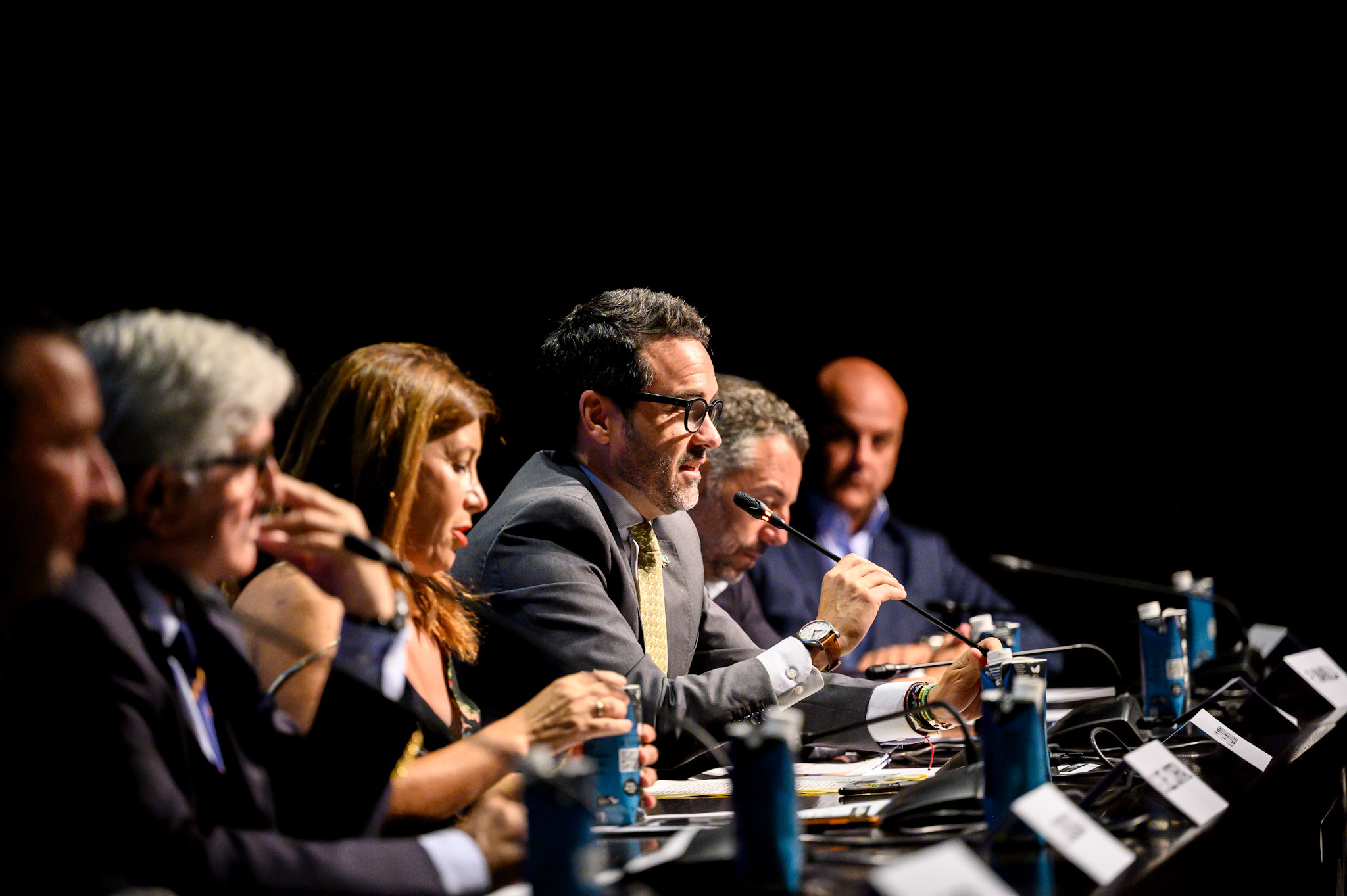El concejal delegado de Turismo y Promoción de la Ciudad del Ayuntamiento de Málaga, Jacobo Florido, junto a la delegada territorial de Turismo, Cultura y Deporte de la Junta de Andalucía, Gemma del Corral, el diputado de Deportes de la Diputación de Málaga, Juan Rosas, el presidente de la Real Federación Española de Golf, Luis Gonzaga, el presidente de la Real Federación Andaluza de Golf, Pablo Mansilla, el CEO de Grupo Pacífico, Mario Milán, y el CEO de CM GOLF, Carlos Marín, han presentado la Feria del Golf IG MEETING Málaga 2025.