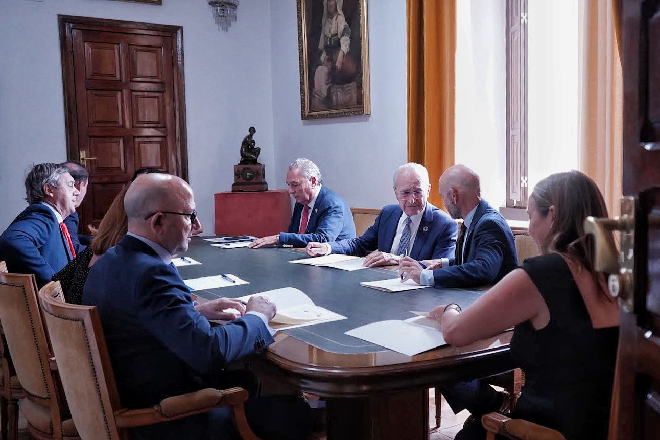 El encuentro, celebrado en el Salón de los Espejos del Consistorio malagueño, ha contado con la participación del presidente del Consejo Regulador de las Denominaciones de Origen “Málaga”, “Sierras de Málaga” y “Pasas de Málaga”, José María Losantos; el secretario general de Agricultura, Ganadería y Alimentación de la Junta de Andalucía, Manuel Gómez; la vicepresidenta tercera de la Diputación de Málaga, Antonia Ledesma; el subdelegado del Gobierno de España, Francisco Javier Salas; el presidente de la Confederación de Empresarios de Andalucía (CEA) y de la Confederación de Empresarios de Málaga (CEM), Javier González de Lara; el rector de la Universidad de Málaga, Teodomiro López Navarrete; la directora de División de Actividades, Comunicación e Imagen de la Fundación Unicaja, Cristina Rico; y la vicepresidenta de la Cámara de Comercio de Málaga, Paloma Moreno.