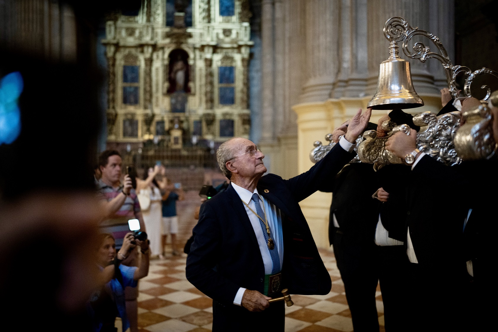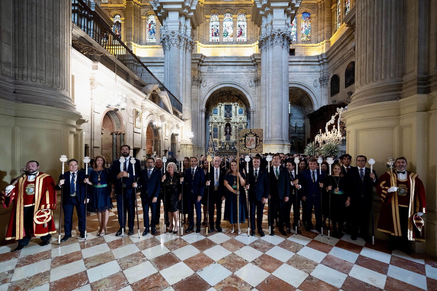 El alcalde de Málaga, Francisco de la Torre, junto a otros ediles de la Corporación Municipal, ha participado en en la salida procesional en honor de la Virgen de la Victoria, patrona de la ciudad. El desfile ha comenzado en el interior de la Catedral,