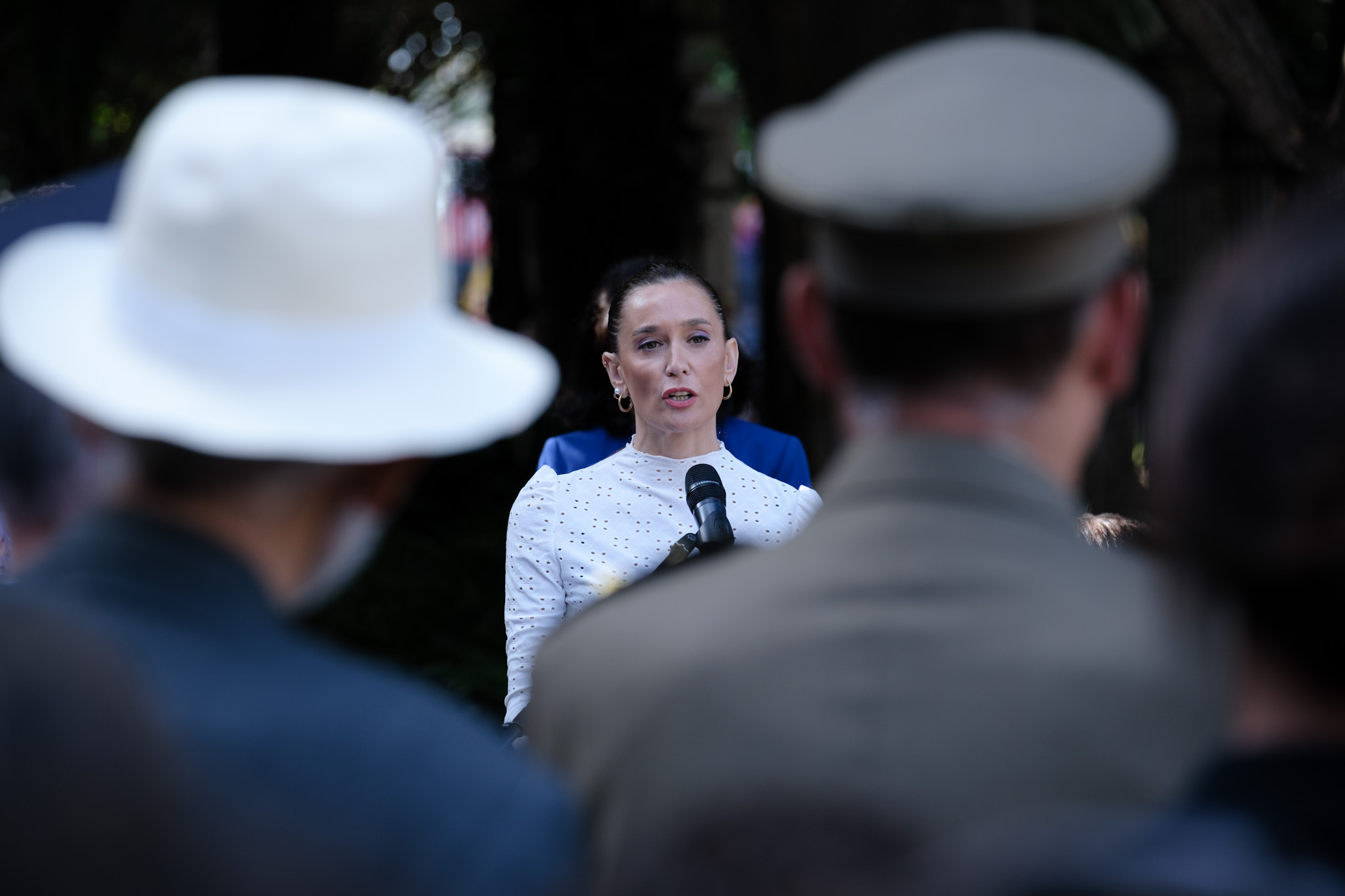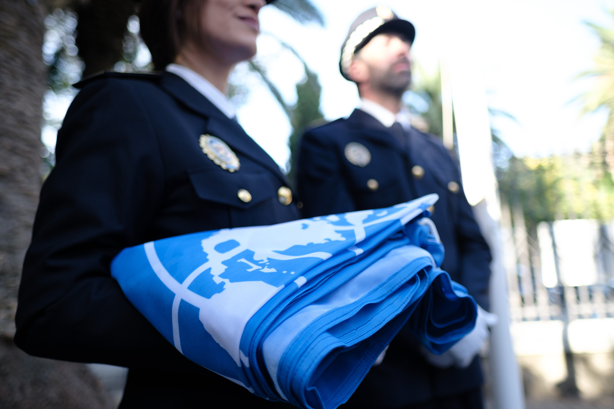 La portavoz del equipo de Gobierno, Elisa Pérez de Siles, acompañada de la concejala delegada de Acción Exterior, Mar Torres, y otros miembros de la Corporación Municipal, ha presidido hoy el acto de izado de la bandera de la ONU con motivo de la conmemoración de su 79ºaniversario.