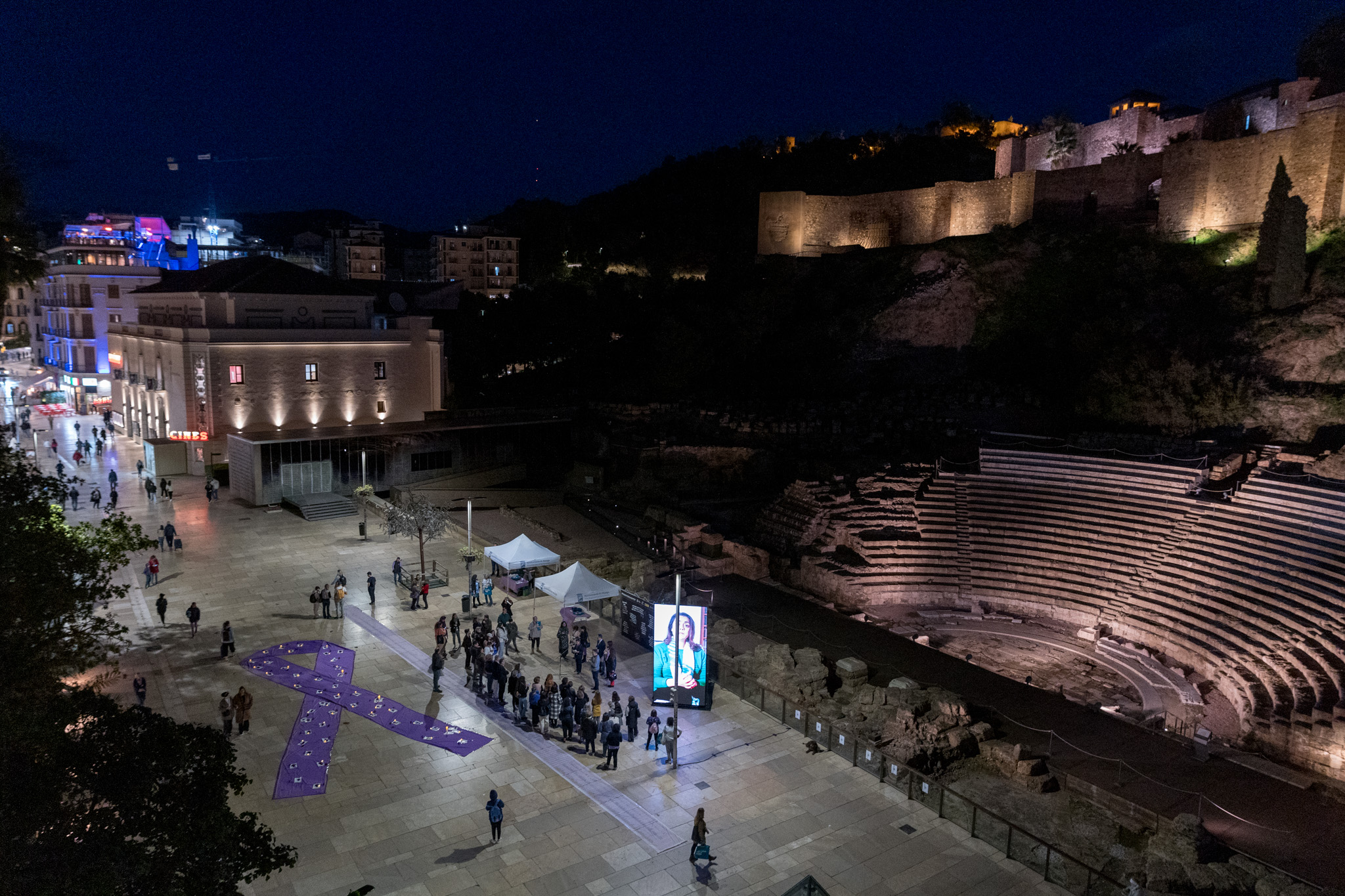 Por la mañana, entre las 11.00 y las 14.00 horas, se ha desarrollado una acción de sensibilización dirigida a jóvenes en la que se ha usado una metodología interactiva a través de una aplicación móvil. Además, durante toda la jornada (de 11.00 a 21.00 horas) una pantalla de grandes dimensiones ha proyectado vídeos y testimonios de mujeres agredidas.
