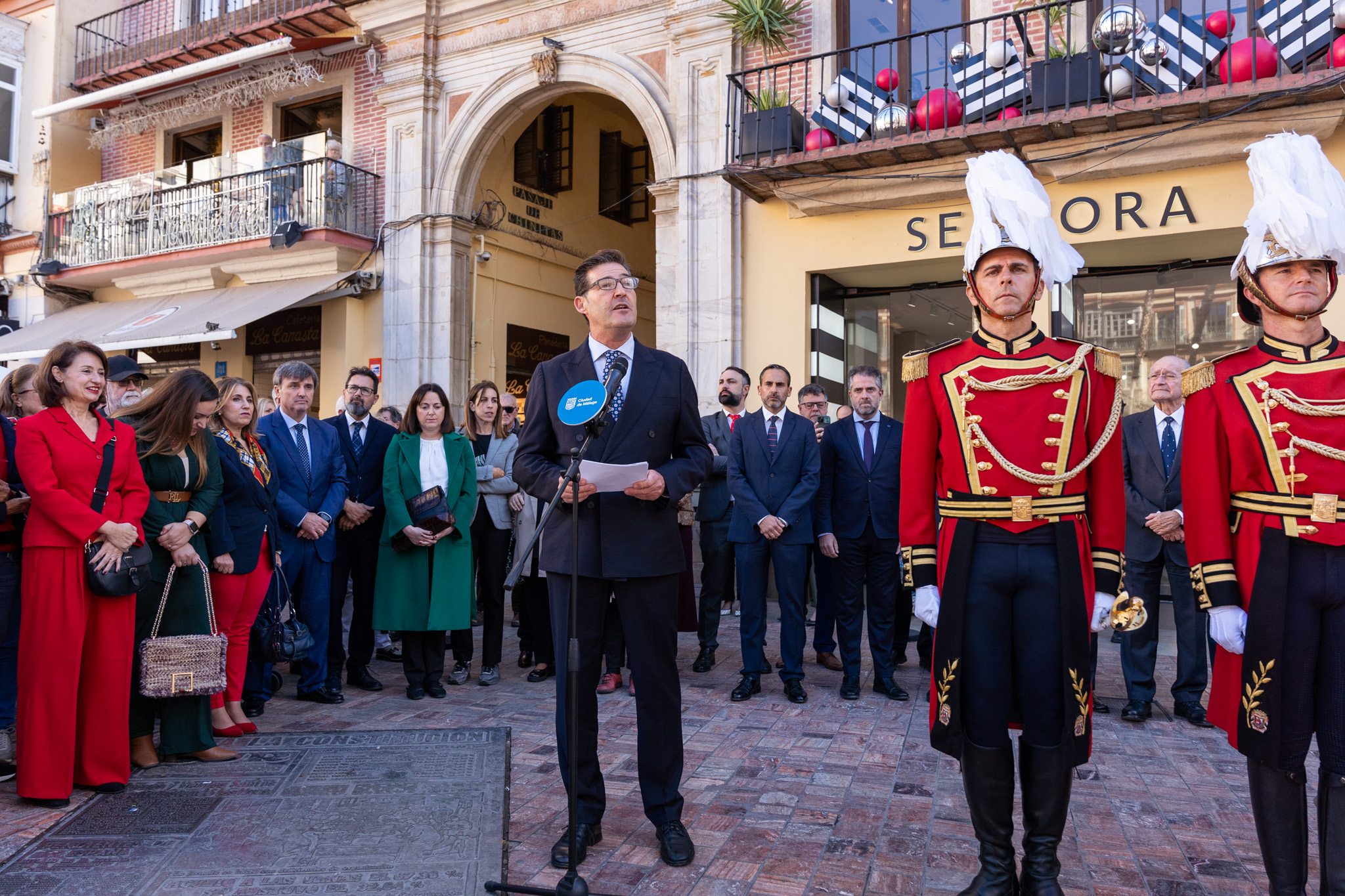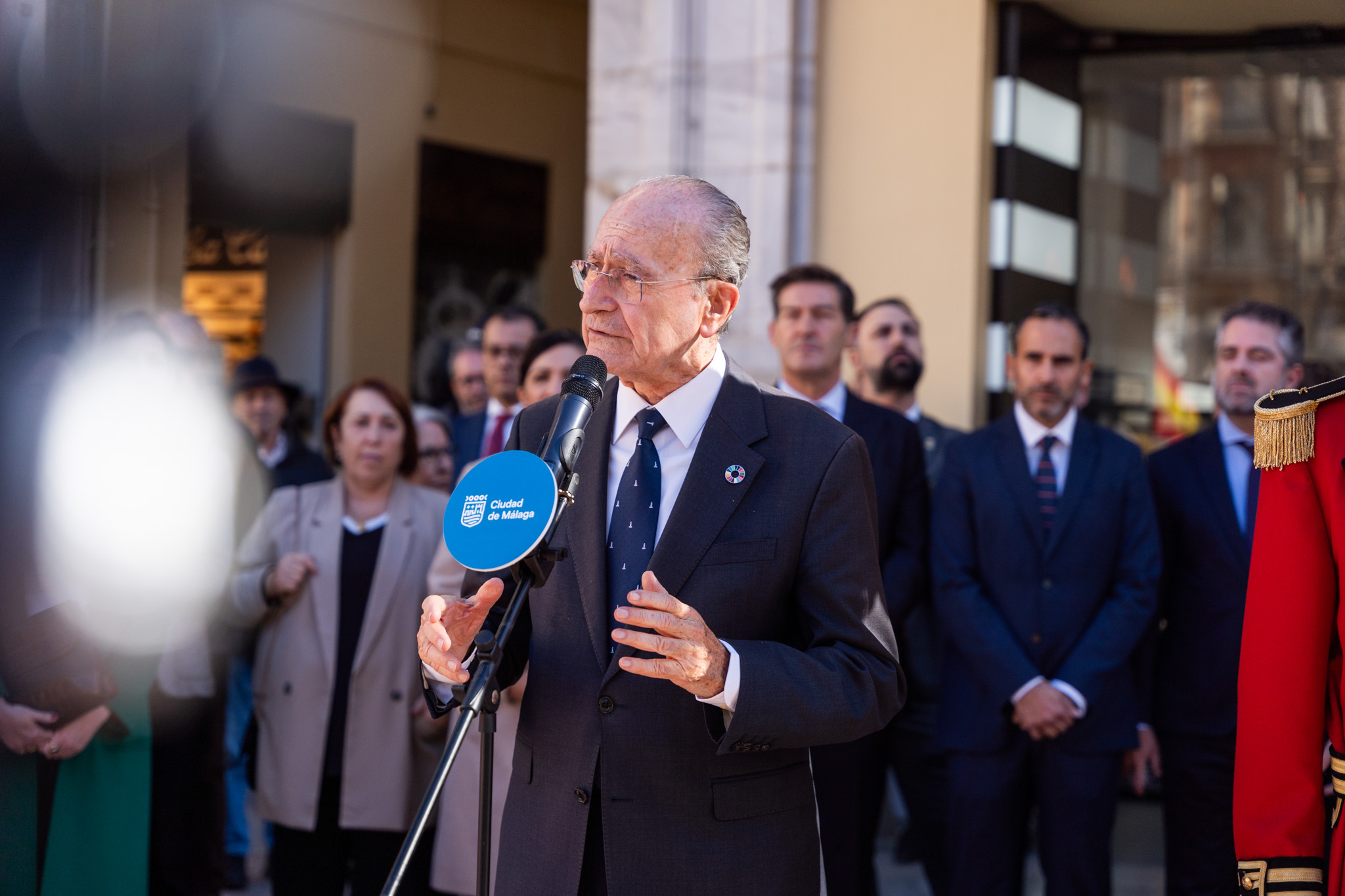 El alcalde de Málaga, Francisco de la Torre, junto a otros ediles de la Corporación, ha participado en el acto municipal con motivo del Día de la Constitución Española, que se ha celebrado en la plaza de la Constitución. Tras las intervenciones de los portavoces de los cuatro grupos municipales (PP, PSOE, Vox y Con Málaga), ha tomado la palabra el alcalde, que ha cerrado el acto con el izado de la bandera de España durante la interpretación del Himno Nacional por parte de la Banda Municipal de Música.