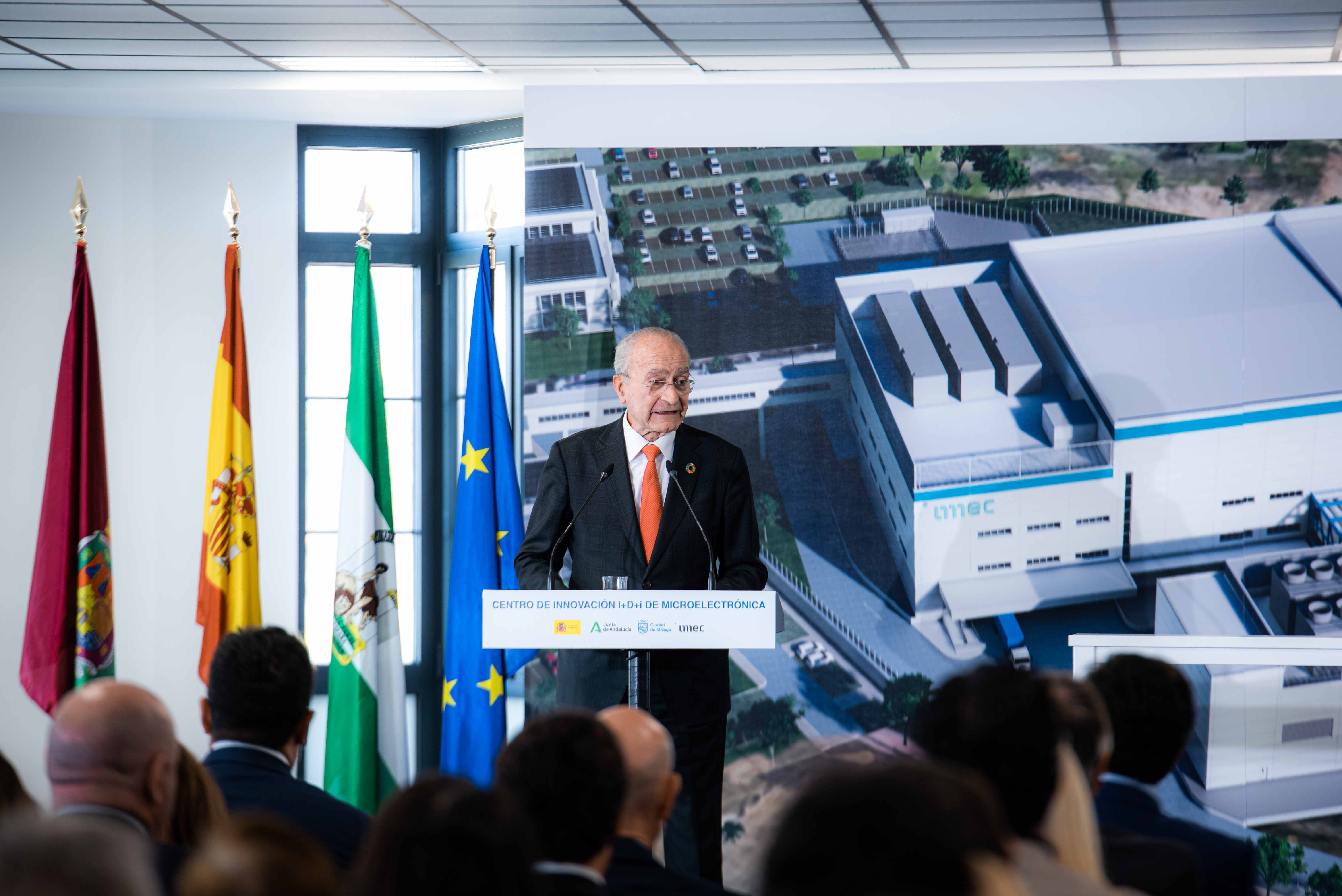 El alcalde de Málaga, Francisco de la Torre, ha participado hoy junto al presidente de la Junta de Andalucía, Juan Manuel Moreno; el ministro de para la Transformación Digital y de la Función Pública, Óscar López; y el vicepresidente y director de Estrategia de IMEC, Jo de Boecken, en el acto en el que se ha formalizado la cesión al Gobierno de España de las parcelas del PTA, una de ellas propiedad del Ayuntamiento de Málaga, para la instalación del IMEC. Al acto, también han asistido las concejalas delegadas de Innovación y Urbanismo, Alicia Izquierdo y Carmen Casero, respectivamente; la vicepresidenta primera del Gobierno de España y ministra de Hacienda, María Jesús Montero; y las consejeras de Economía, Hacienda y Fondos Europeos y la de Empleo, Empresa y Trabajo Autónomo, Rocío Blanco.