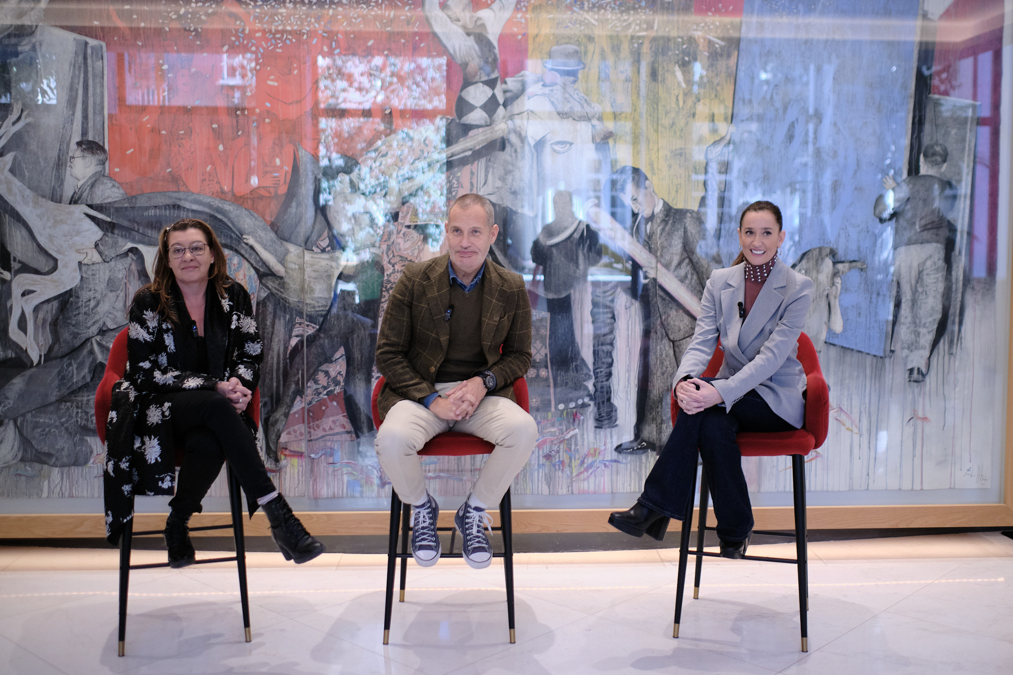La concejala delegada de Comercio, Vía Pública y Fomento de la Actividad Empresarial, Elisa Pérez de Siles, junto a la diputada provincial de Desarrollo Económico Sostenible, Esperanza González, ha asistido a un encuentro con el diseñador malagueño Rafael Urquizar, quien presentará "Vanguard’, su colección Otoño-Invierno 2025/26, en la Mercedes-Benz Fashion Week. El acto ha tenido lugar este mediodía en el Teatro Soho CaixaBank.