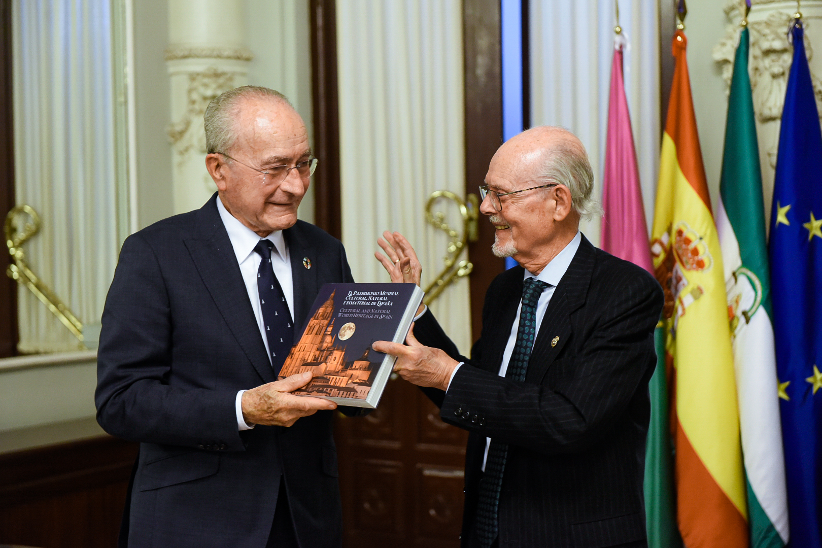 El alcalde de Málaga, Francisco de la Torre, junto al presidente de la Fundación para la Difusión y Promoción del Patrimonio Mundial de España (ADIPROPE), Ignacio Buqueras, ha participado en el acto de presentación del libro "El Patrimonio Mundial Cultural, Natural e Inmaterial de España" y del Premio Patrimonio Mundial Federico Mayor Zaragoza, organizado por el Ayuntamiento de Málaga y la Fundación para la Difusión y Promoción del Patrimonio Mundial de España (ADIPROPE).