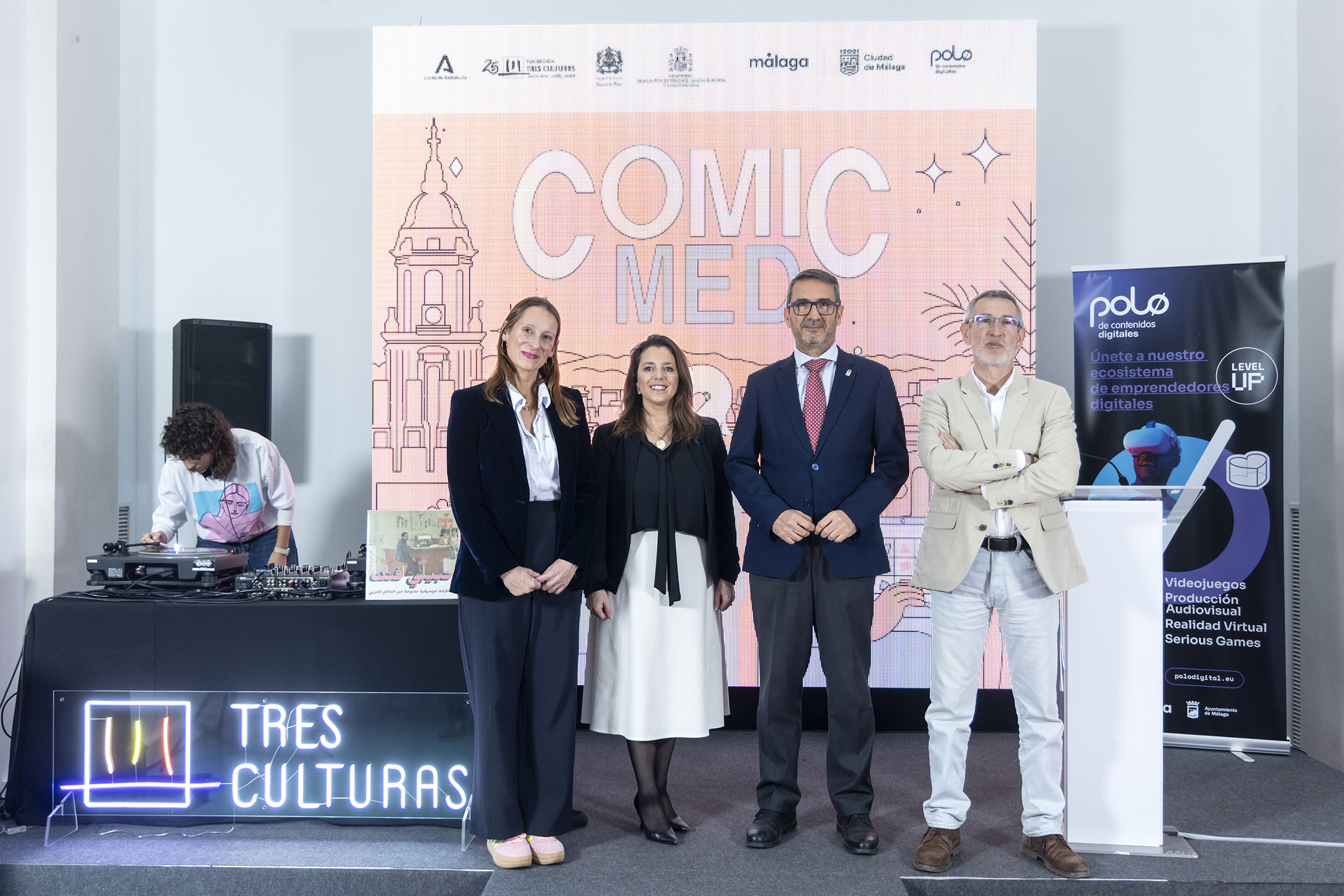 La concejala delegada de Acción Exterior, Mar Torres, ha asistido hoy a la inauguración de la primera edición del Festival Internacional del Cómic Mediterráneo (Comicmed) que organiza la Fundación Tres Culturas del Mediterráneo con la colaboración del Ayuntamiento de Málaga, en el Polo Nacional de Contenidos Digitales, en Tabacalera.
