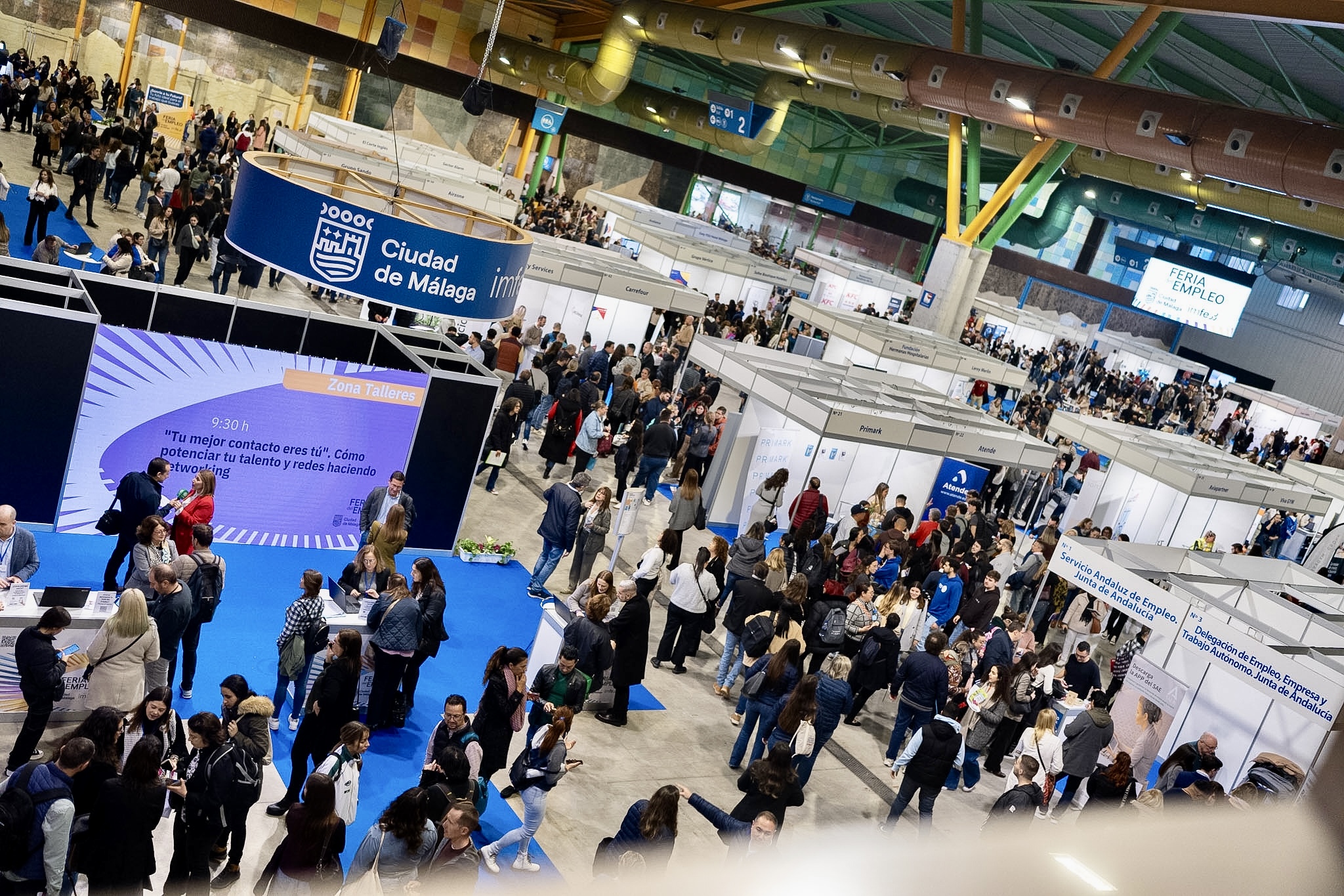 El alcalde de Málaga, Francisco de la Torre, junto a la concejala delegada de Educación y Fomento del Empleo, María Paz Flores, ha visitado esta mañana la Feria del Empleo que organiza hoy el Instituto Municipal para la Formación y el Empleo (IMFE) en el Palacio de Ferias y Congresos, Fycma. En la edición de este año se han inscrito más de 9.000 personas y cuenta con la participación de más de 80 de las principales empresas empleadoras de la ciudad. La Feria del Empleo incluye, además, un variado programa de conferencias, talleres y otras actividades enfocadas a promover y dinamizar el mercado laboral.