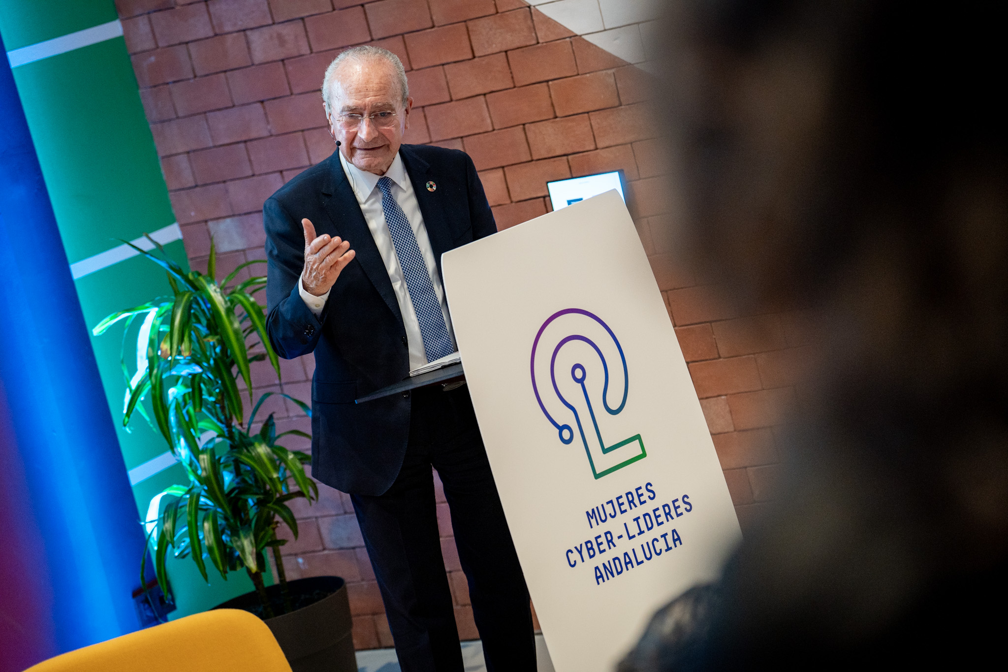 El alcalde de Málaga, Francisco de la Torre, acompañado por la concejala delegada de Innovación, Digitalización y Captación de Inversiones, Alicia Izquierdo, junto al consejero de la Presidencia, Antonio Sanz; el rector de la Universidad de Málaga, Teodomiro López, y la fundadora del Foro, Mar López, ha asistido esta mañana a la inauguración deI "I Aniversario del Foro de Mujeres Cyberlideres de Andalucía", que se ha celebrado en el Centro de Excelencia de Ciberseguridad de Google (GSEC).