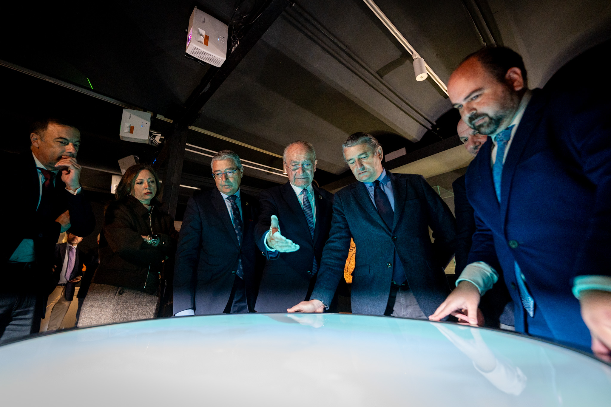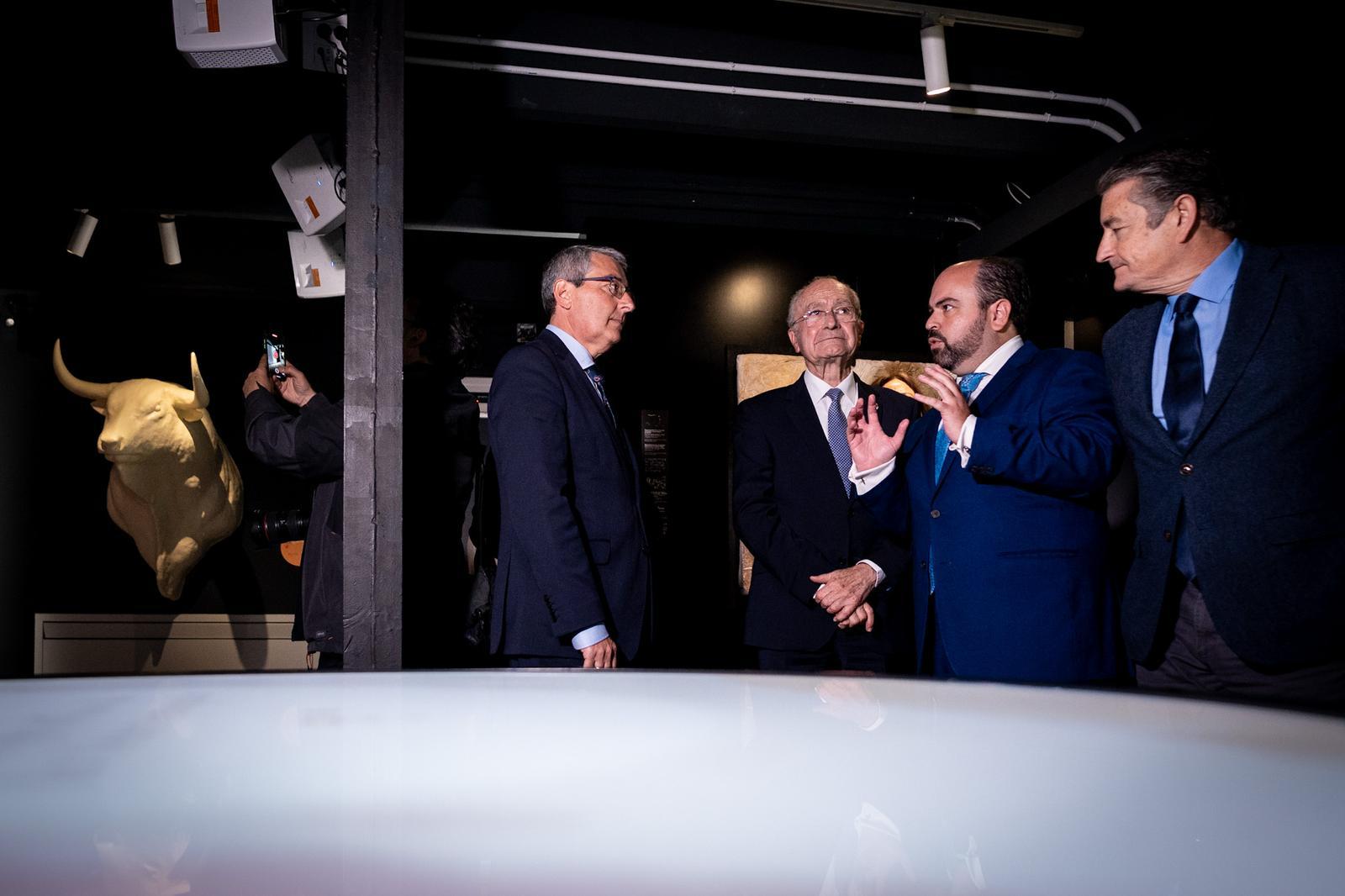 El alcalde de Málaga, Francisco de la Torre, junto a los consejeros de Presidencia y de Turismo de la Junta de Andalucía, Antonio Sanz y Arturo Bernal, respectivamente; el presidente de la Diputación de Málaga, Francisco Salado; la concejala delegada de Fiestas, Teresa Porras, y el concejal delegado de Turismo, Jacobo Florido, ha asistido esta mañana a la inauguración del Centro de Experiencias Inmersivas de la Tauromaquia en la Plaza de Toros de La Malagueta.