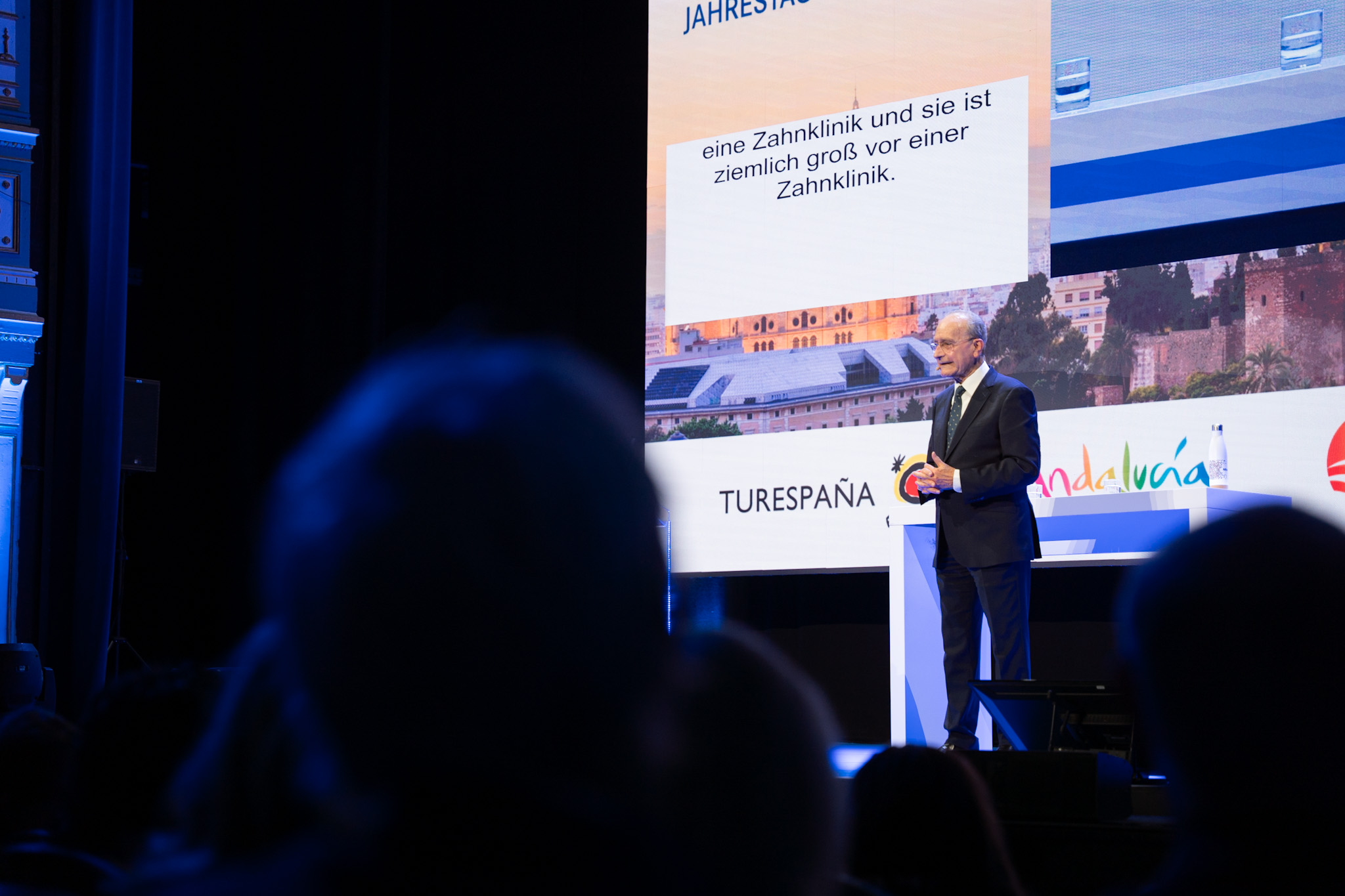 El alcalde de Málaga, Francisco de la Torre, junto al consejero de Turismo y Andalucía Exterior, Arturo Bernal; al presidente de la Diputación de Málaga, Francisco Salado;y al director ejecutivo de Deuscher Reiserverband (DRV), Achim Wehrmann; ha participado esta mañana en la inauguración del 75 congreso y asamblea anual de la Deuscher Reiserverband (DRV), que ha tenido lugar en el Teatro Cervantes.