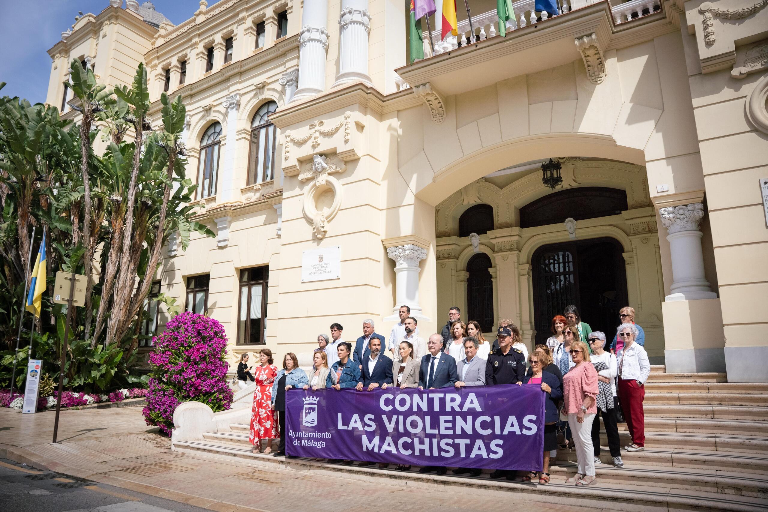 un minuto de silencio en las escaleras exteriores del Ayuntamiento de Málaga en memoria de la última