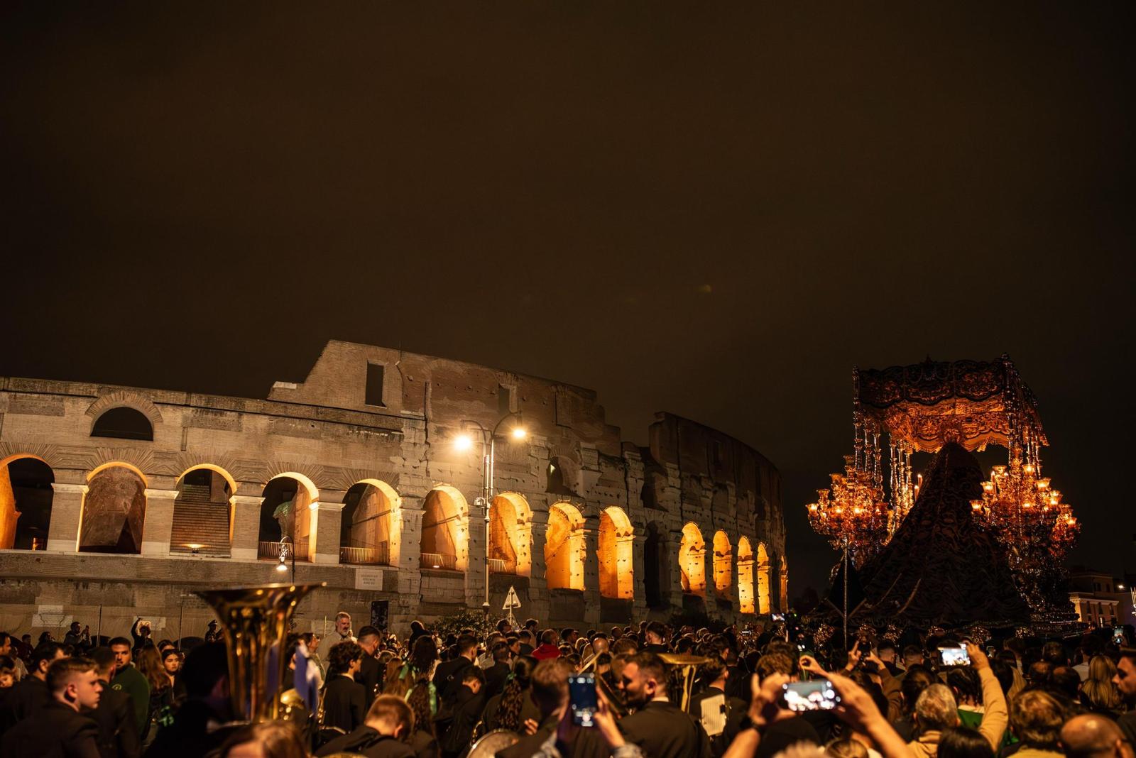 Imágenes de la Gran Procesión, con motivo del Jubileo de las cofradías 2025, en la que María Santísima de la Esperanza de Málaga recorrió ayer tarde las calles de Roma.