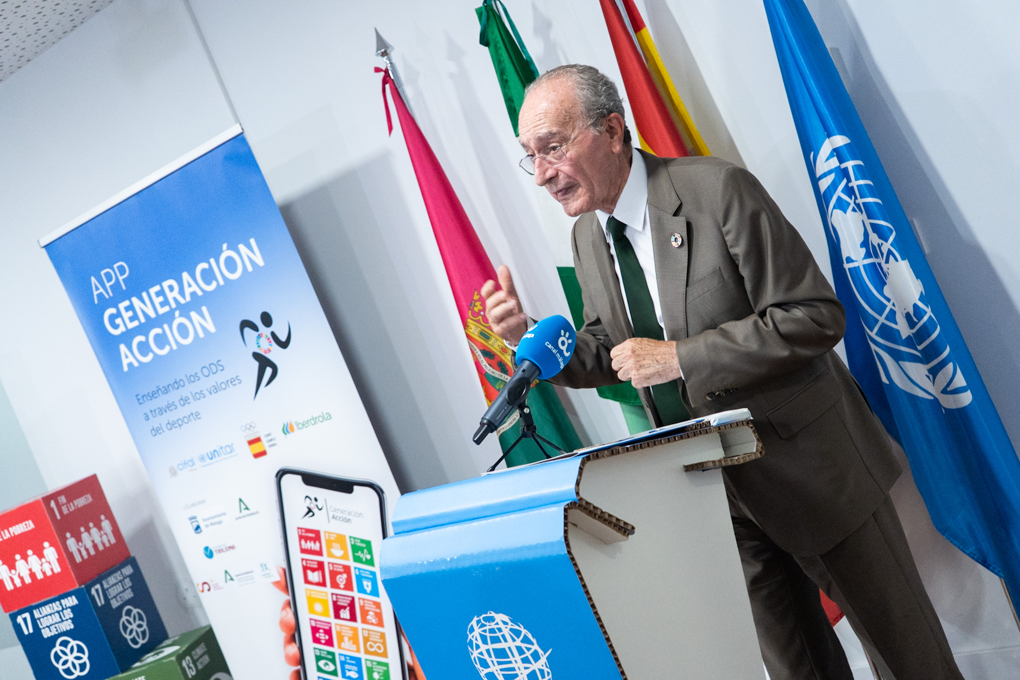 El alcalde de Málaga, Francisco de la Torre, junto a la concejala delegada de Participación, Migración y Cooperación al Desarrollo, Mar Torres; ha participado hoy en la entrega de premios de la tercera edición del proyecto educativo "Generación Acción" impulsado por CIFAL Málaga y el Comité Olímpico Español para la enseñanza de los Objetivos de Desarrollo Sostenible a través de los valores del deporte a escolares.