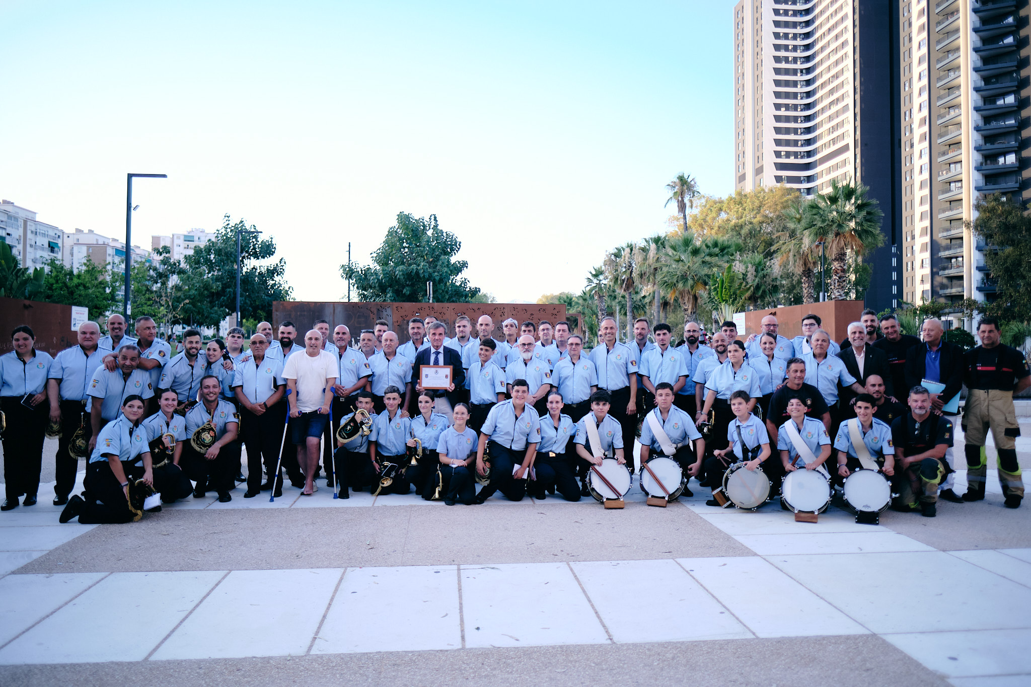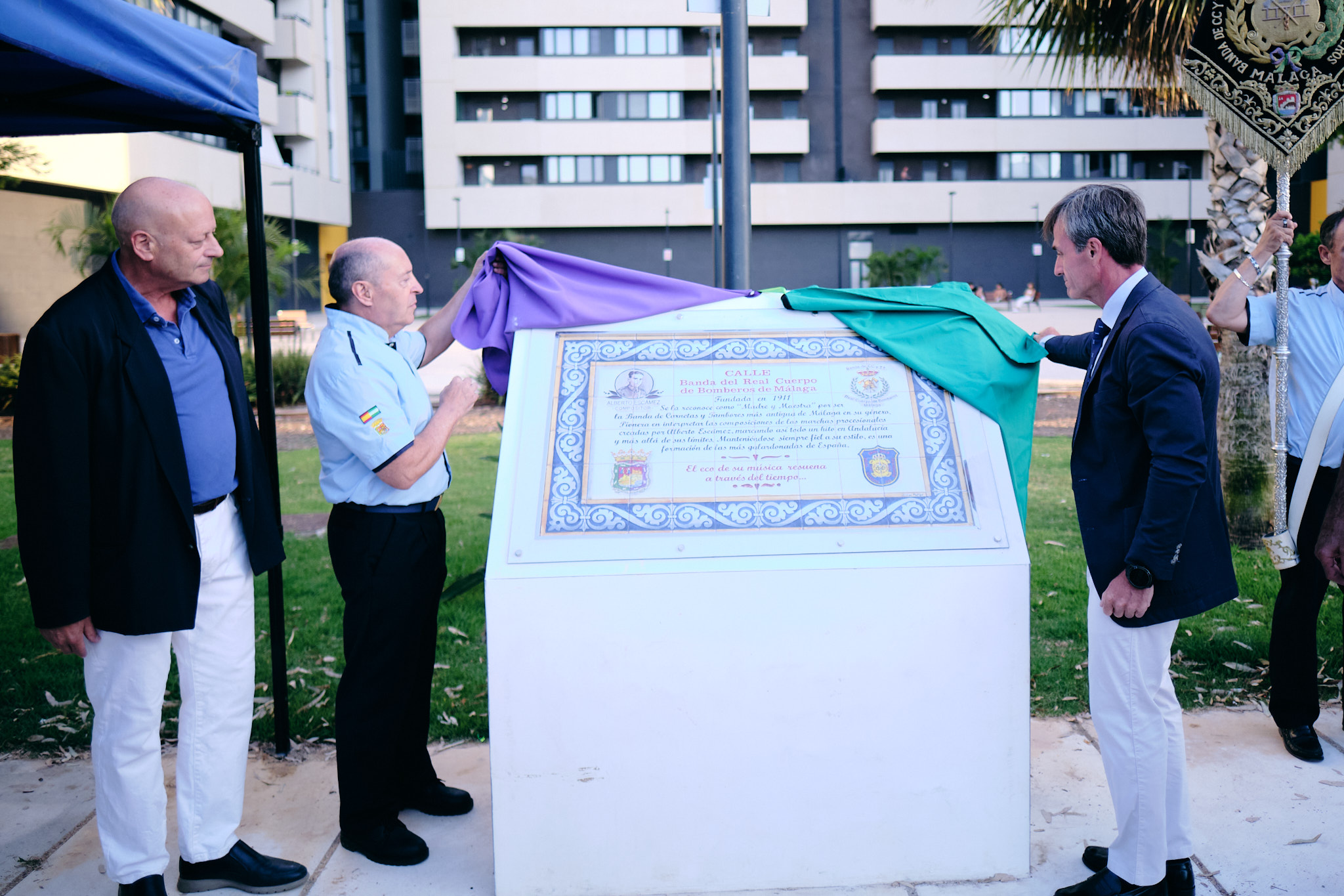 Inauguración del mosaico dedicado a la Banda de Cornetas y Tambores del Real Cuerpo de Bomberos de Málaga