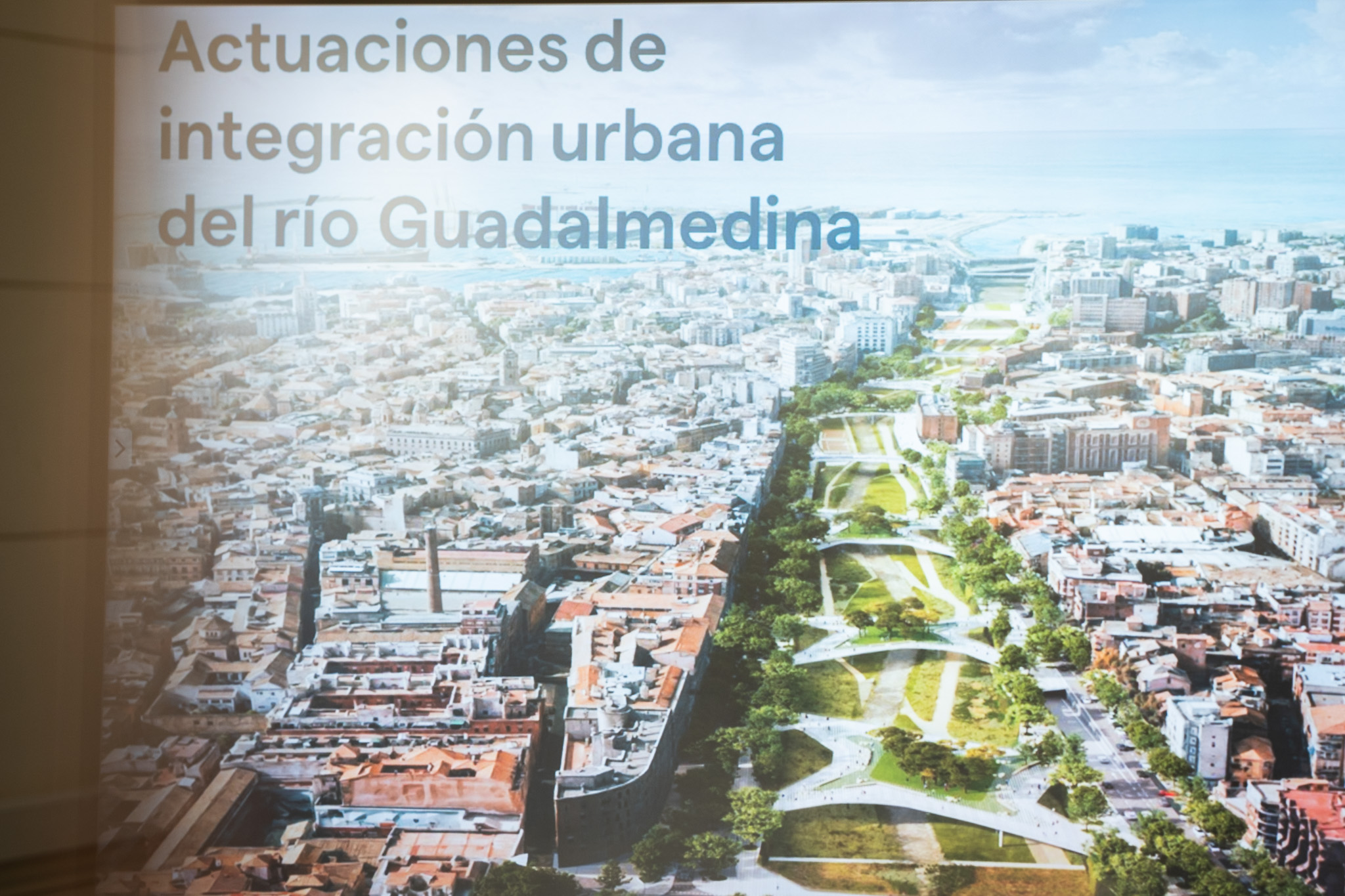 La integración urbana del río Guadalmedina contempla la creación de cinco plazas-puente y un gran corredor verde entre los puentes de Armiñán y Perchel