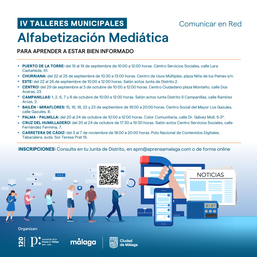Abierto el plazo de inscripción para los Talleres de Alfabetización Mediática que alcanzan su cuarta edición con sesiones gratuitas en nueve distritos de la ciudad