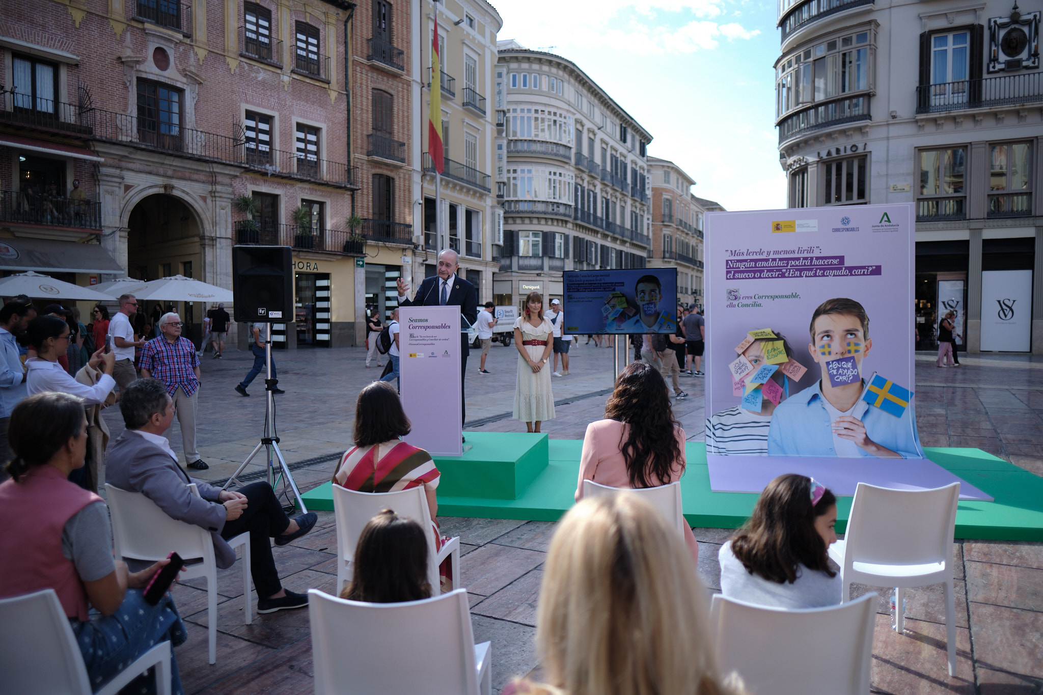 El alcalde de Málaga, Francisco de la Torre, junto al concejal delegado de Derechos Sociales, Francisco Cantos, y la consejera de Inclusión Social, Juventud, Familias e Igualdad, Loles López, ha asistido a la presentación de la nueva fase de la campaña ‘Ley de ya era hora de ser corresponsables y conciliar de verdad’ que promueve la Junta de Andalucía con cargo al Plan Corresponsables del Ministerio de Igualdad.