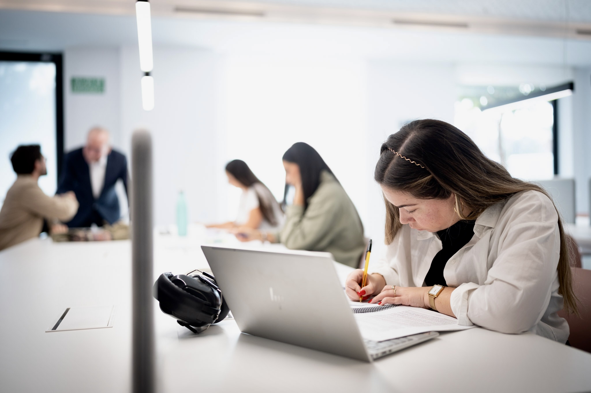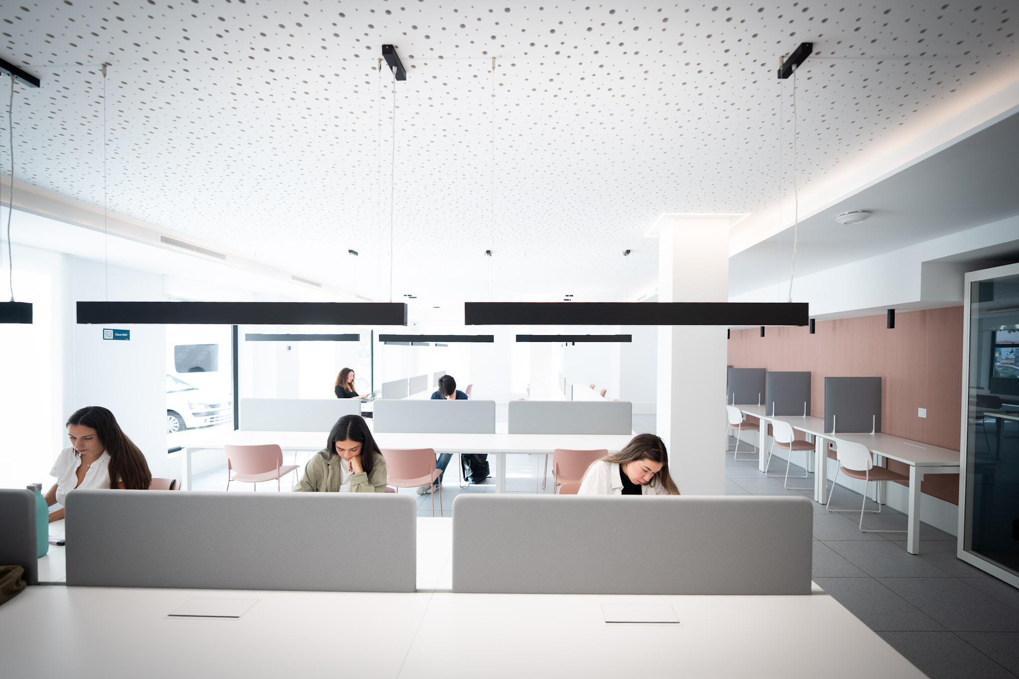 La nueva sala dispone de puestos previa reserva con tomas de electricidad y USB, taquillas, climatización, aislamiento acústico, zona de descanso, cabinas de concentración y wifi