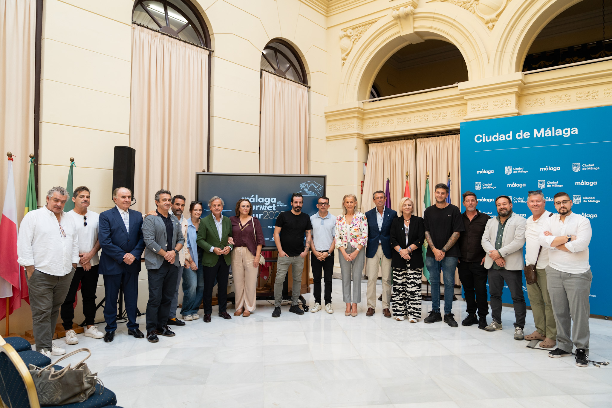 El concejal delegado de Turismo y Promoción de la Ciudad, Jacobo Florido, junto al presidente de la Academia Gastronómica de Málaga, Manolo Tornay, el delegado de Agricultura, Pesca, Agua y Desarrollo Rural de la Junta de Andalucía en Málaga, Fernando Fernández Tapia-Ruano, y la vicepresidenta cuarta de la Diputación Provincial, Francisca Caracuel, ha asistido al acto de presentación del programa de actividades gastroculturales “Málaga Gourmet Tour”. Se desarrollará entre el 24 de octubre y el 24 de noviembre en diversos puntos de Málaga y la provincia, y contempla la exposición “Beyond the Star”, un festival de alta cocina y 20 rutas de experiencias gastroculturales. La iniciativa, promovida por la Academia Gastronómica de Málaga, cuenta con el apoyo y la colaboración del Ayuntamiento de Málaga, la Junta de Andalucía, la Diputación Provincial, Turismo y Planificación Costa del Sol, Sabor a Málaga y Gusto del Sur, entre otras entidades públicas y privadas.