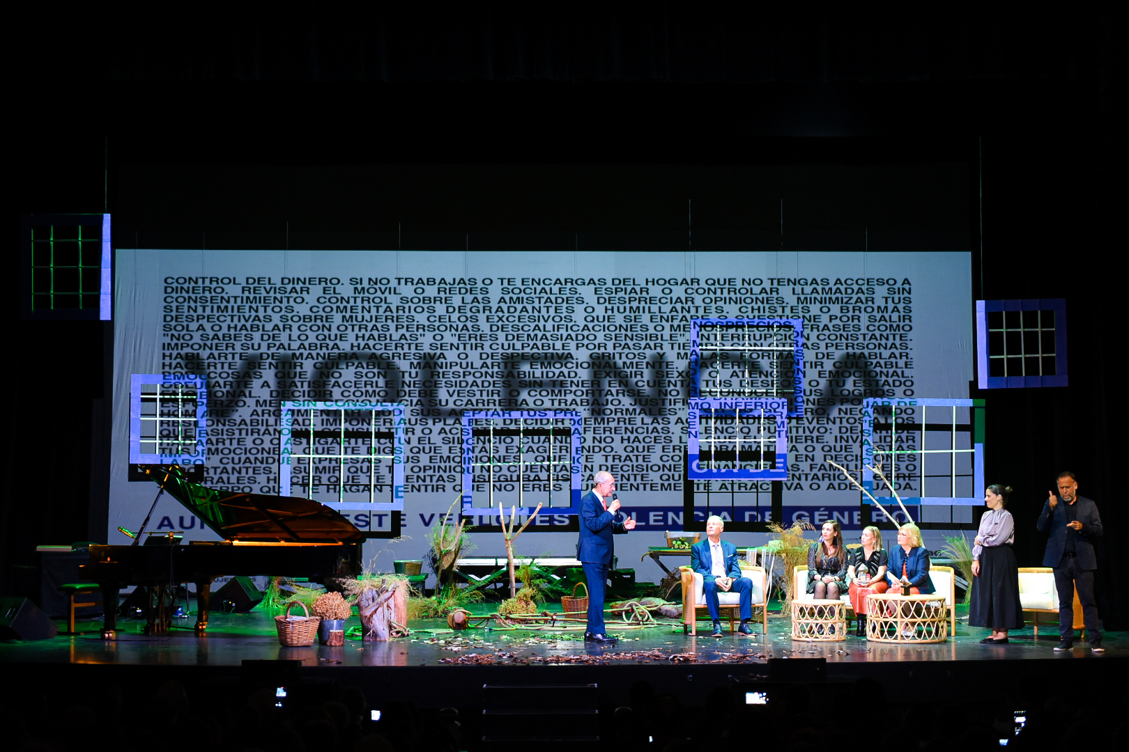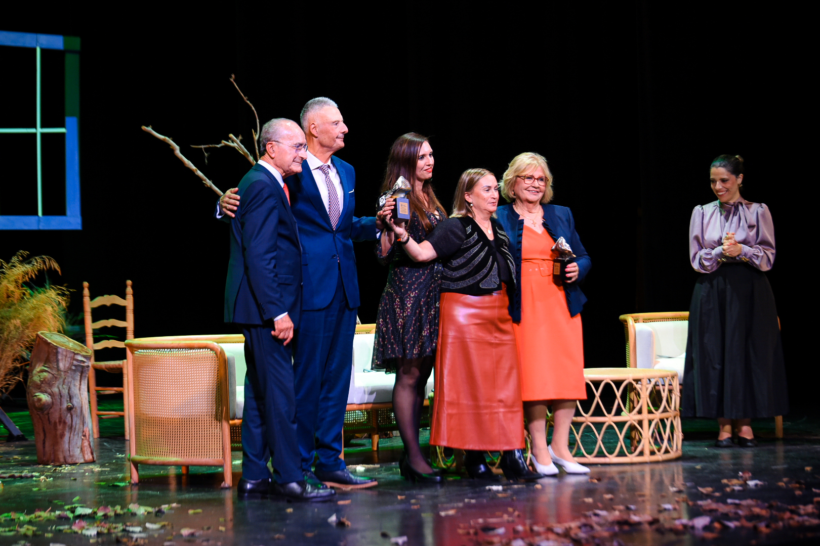 El alcalde de Málaga, Francisco de la Torre, junto al concejal delegado de Derechos Sociales, Francisco Cantos, y otros ediles de la Corporación, ha asistido a la gala homenaje organizada por el Ayuntamiento en el marco de los actos conmemorativos del Día Internacional de la Eliminación de la Violencia contra la Mujer, en la que también ha contado con la presencia de los colectivos que integran el Consejo Sectorial de las Mujeres. En el acto, celebrado en el Teatro Cervantes, han sido reconocidos el IES Jacaranda (en el distrito Churriana) por su implicación durante todo el curso en el fomento de la igualdad de género entre su alumnado y en el resto de la comunidad educativa, y Paqui Cruzado, presidenta de la Asociación Cultural Recreativa Embrujo Malagueño (Acrem), por su labor contra la violencia de género y en defensa de la igualdad a través del tejido asociativo de la ciudad. El evento ha albergado también el espectáculo ‘Cruzar’, a cargo de la compañía Teatro Didáctico, que ha combinado teatro, música y danza para abordar la importancia de la sororidad y la memoria colectiva como herramientas para la erradicación de la violencia contra las mujeres.