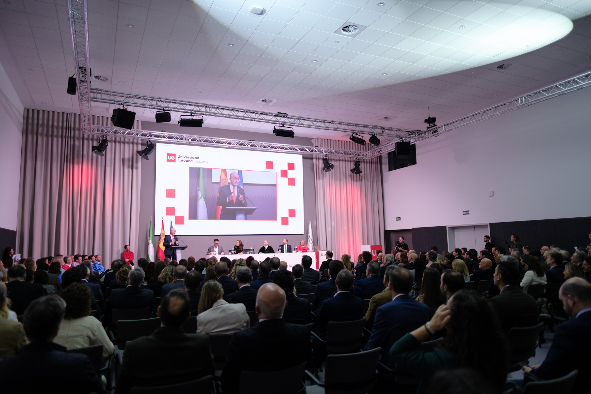 El alcalde, Francisco De la Torre, ha participado esta mañana en la inauguración del Campus y del curso académico 2025/2026 de la Universidad Europea de Andalucía. Durante el acto, en el que también han participado el secretario general de Universidades de la Junta de Andalucía, Ramón Herrera de las Heras, y la presidenta y CEO de la Universidad Europea, Otilia de la Fuente, se ha investido como rector de esta institución a Daniel Hormigo.
