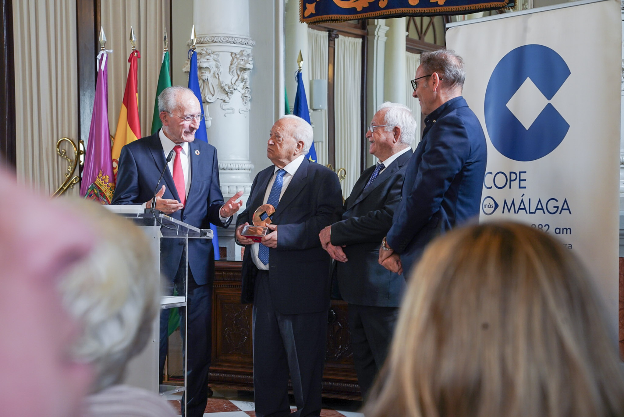 El alcalde de Málaga, Francisco de la Torre, junto a la concejala delegada de Comercio, Elisa Pérez de Siles, ha asistido a la entrega del premio al Comercio Tradicional del Año, organizado por la Cadena COPE, que en esta edición ha sido concedido a Navarro Hermanos. El acto ha tenido lugar en el Salón de los Espejos del Ayuntamiento.