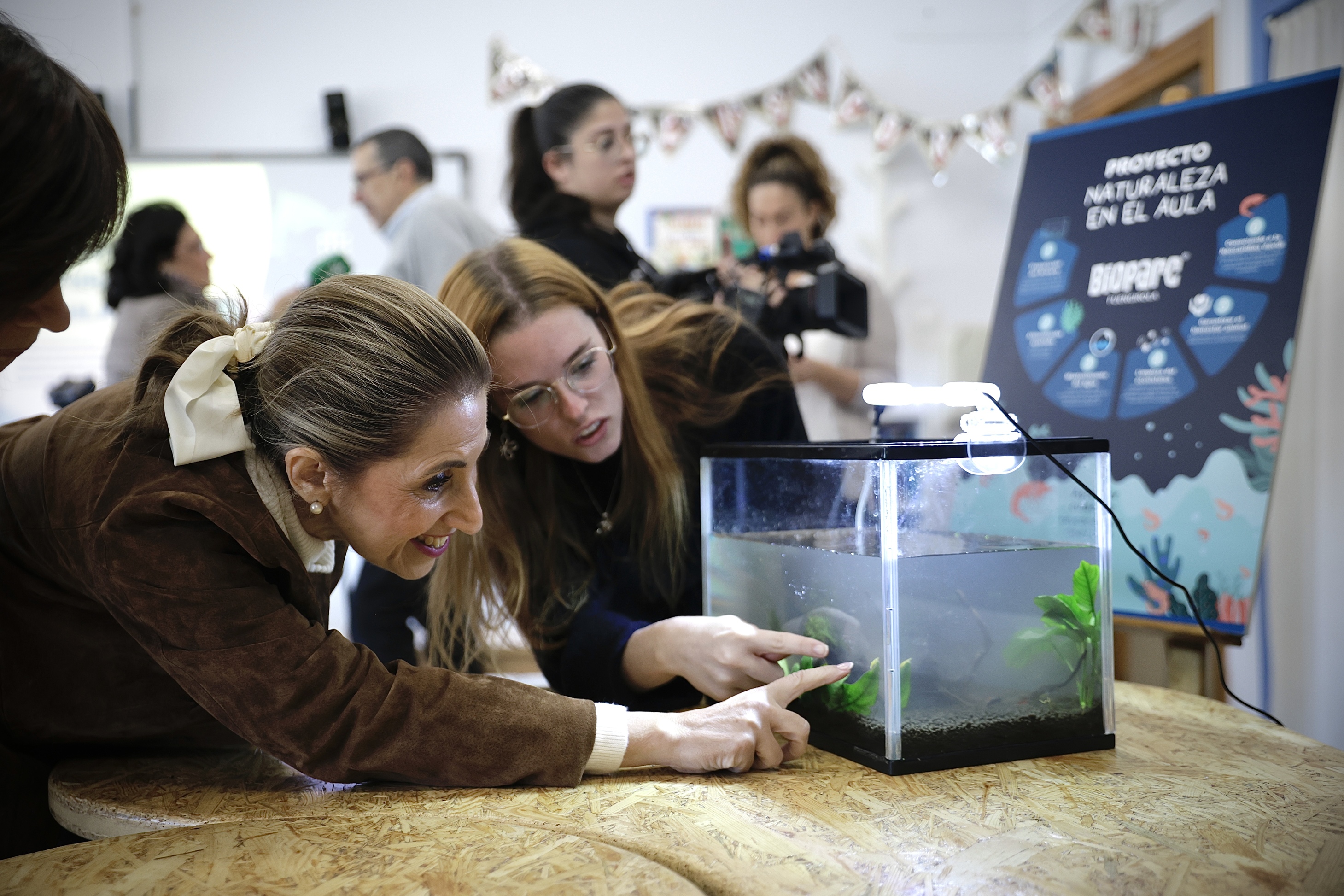 La concejala delegada de Educación, María Paz Flores, junto al director de Bioparc Fuengirola, Francisco de Asís García, ha asistido a la presentación del proyecto educativo ‘Naturaleza en el Aula’ impulsado por Bioparc Fuengirola. La iniciativa, dirigida al alumnado de 2.º y 3.º de Educación Primaria, consiste en la instalación de pequeños acuarios de agua dulce que albergarán un ecosistema real para convertir cada clase en un espacio vivo de observación, ciencia y aprendizaje activo a través de la naturaleza. La presentación ha tenido lugar en el CEIP Nuestra Señora de Gracia, uno de los centros participantes.