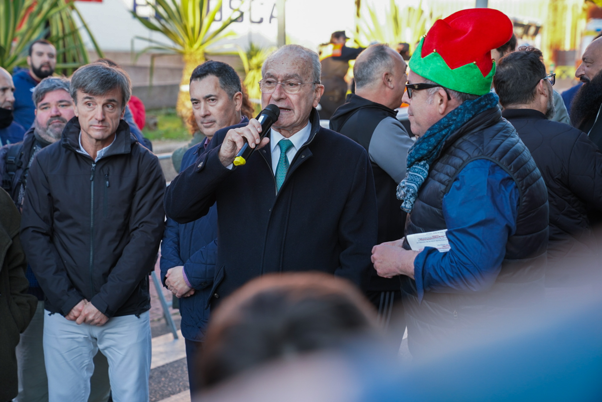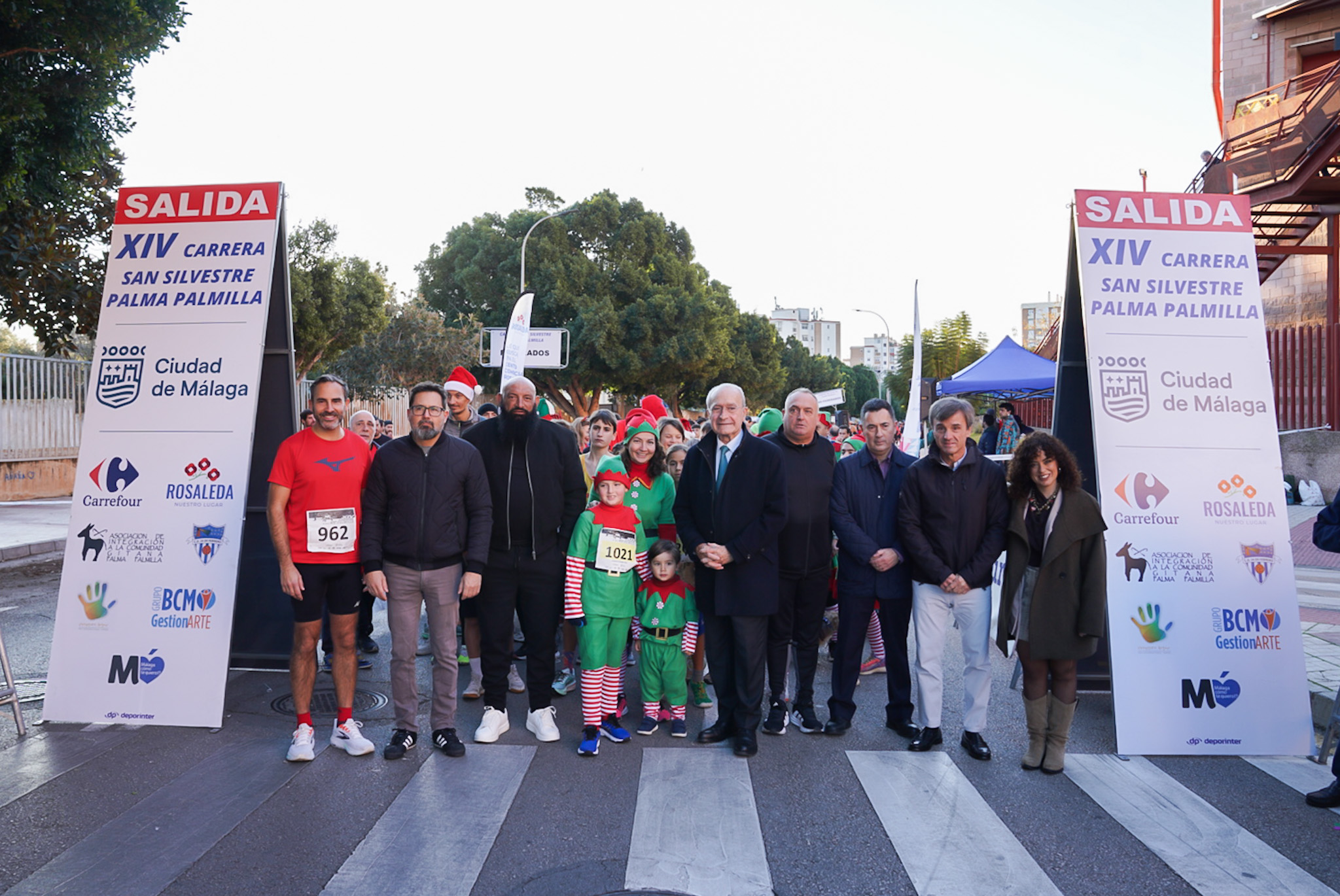 El alcalde de Málaga, Francisco de la Torre, acompañado del concejal delegado del distrito Palma-Palmilla, Francisco Pomares, y el edil de Seguridad, Avelino Barrionuevo, ha asistido a la salida de la XIV Carrera Solidaria San Silvestre.