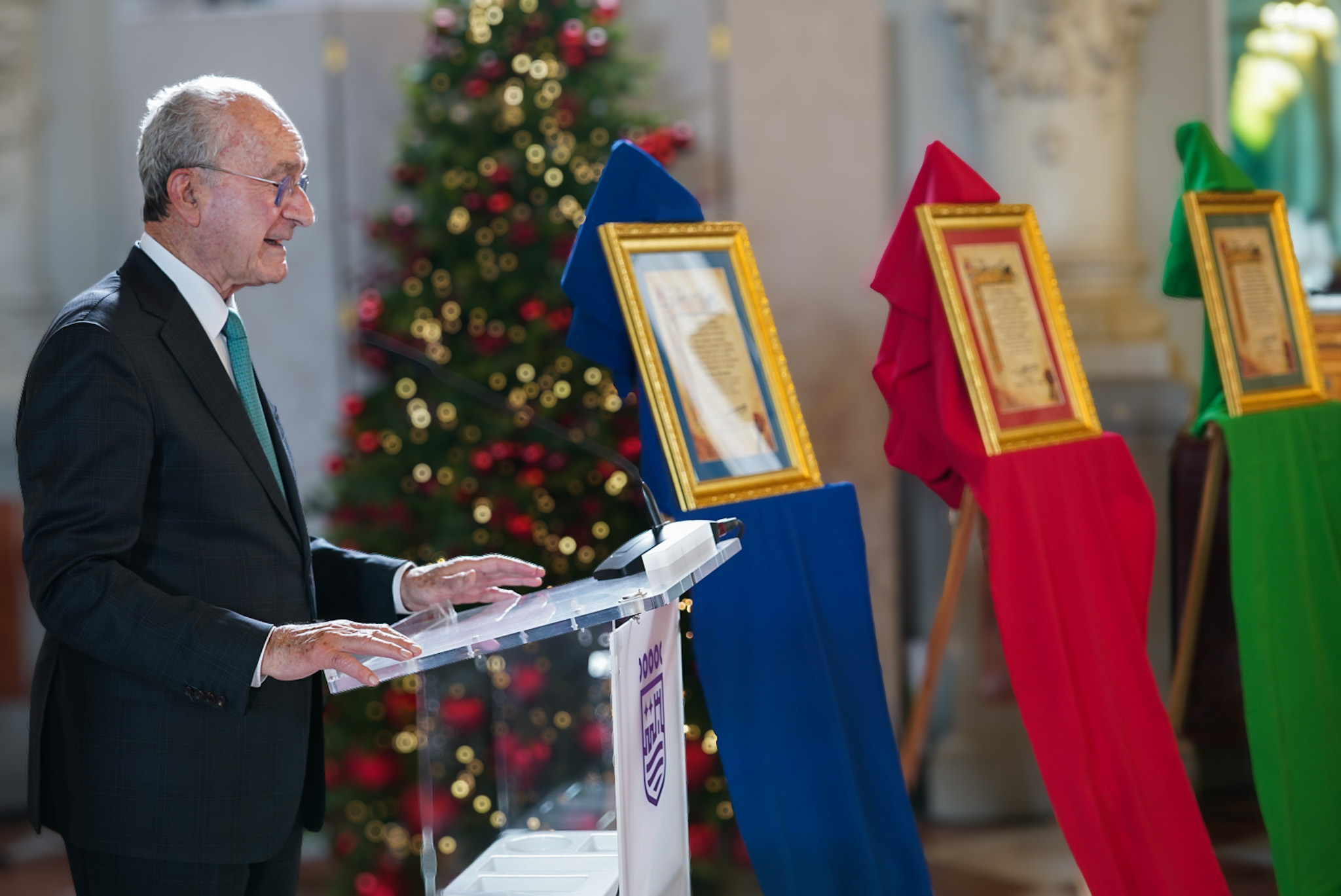 El alcalde de Málaga, Francisco de la Torre, junto a la concejala delegada de Fiestas, Teresa Porras, ha hecho entrega esta mañana de los nombramientos a los representantes de Sus Majestades los Reyes Magos de Oriente en la cabalgata de la ciudad del próximo 5 de enero. El acto se ha celebrado en el salón de los Espejos del Ayuntamiento.