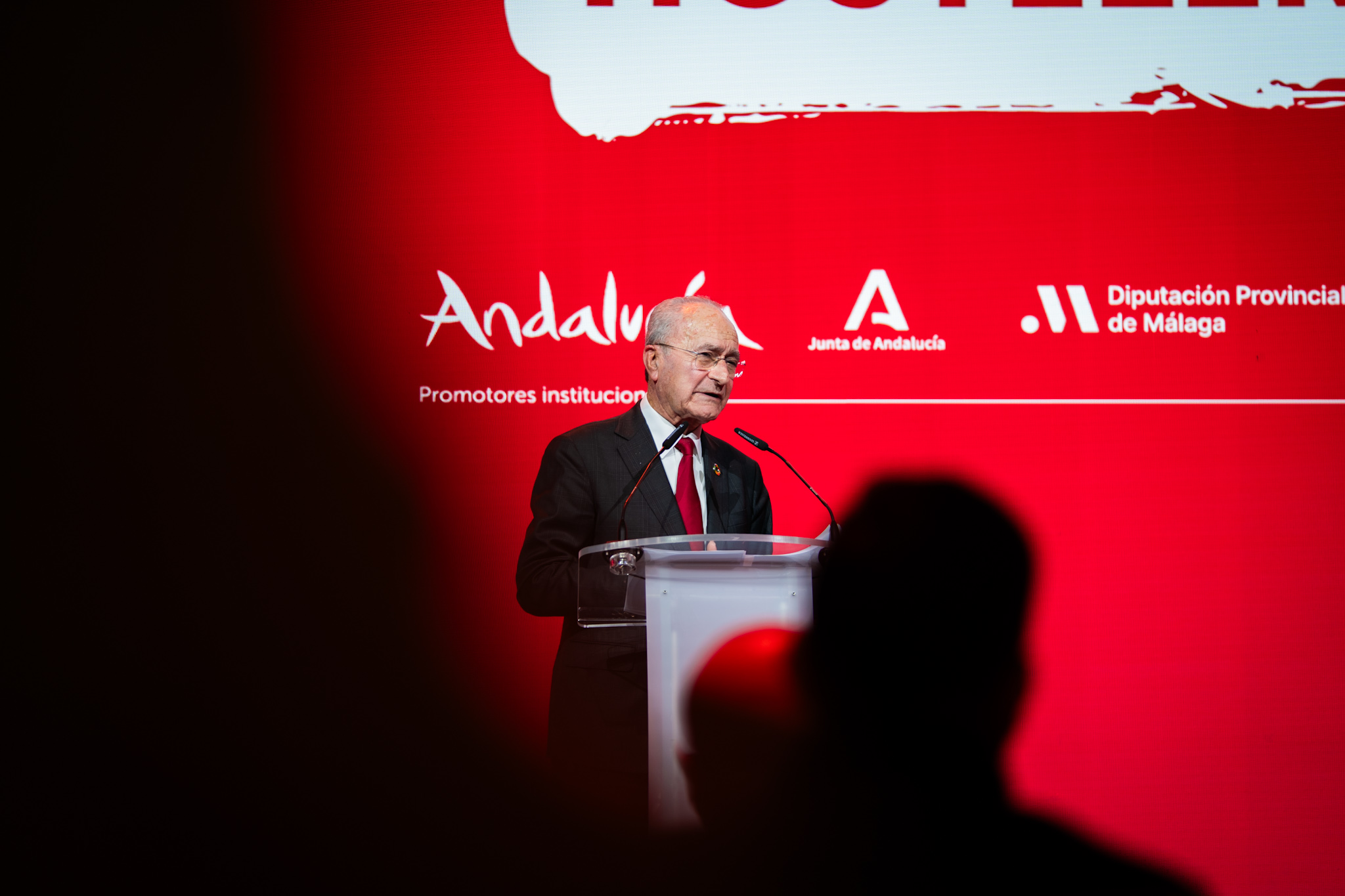 El alcalde de Málaga, Francisco de la Torre, acompañado de la concejala delegada de Innovación, Digitalización y Captación de Inversiones, Alicia Izquierdo, junto a los presidentes de la Confederación Empresarial de Hostelería de España y de la Federación de Hostelería de Andalucía, José Luis Álvarez y Javier Frutos, respectivamente; el consejero de Turismo y Andalucía Exterior de la Junta de Andalucía, Arturo Bernal, y el presidente de la Diputación de Málaga, Francisco Salado, ha participado en el acto de inauguración de la VI edición del Foro Nacional de Hostelería, enmarcado en el salón H&T 2026 que se celebra en el Palacio de Ferias y Congresos de Málaga (Fycma).