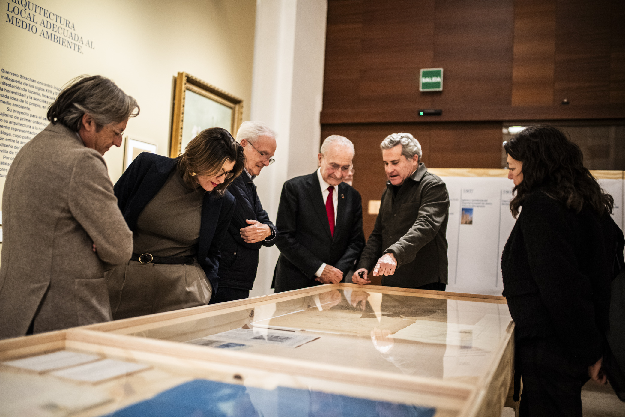 El alcalde de Málaga, Francisco de la Torre, junto a la concejala delegada de Urbanismo, Carmen Casero, y la decana del Colegio Oficial de Arquitectos de Málaga, Susana Gómez de Lara, ha visitado hoy en el Museo de Málaga la exposición ‘Más que un grano de arena. Málaga y el arquitecto Guerrero Strachan (1880-1973)’.