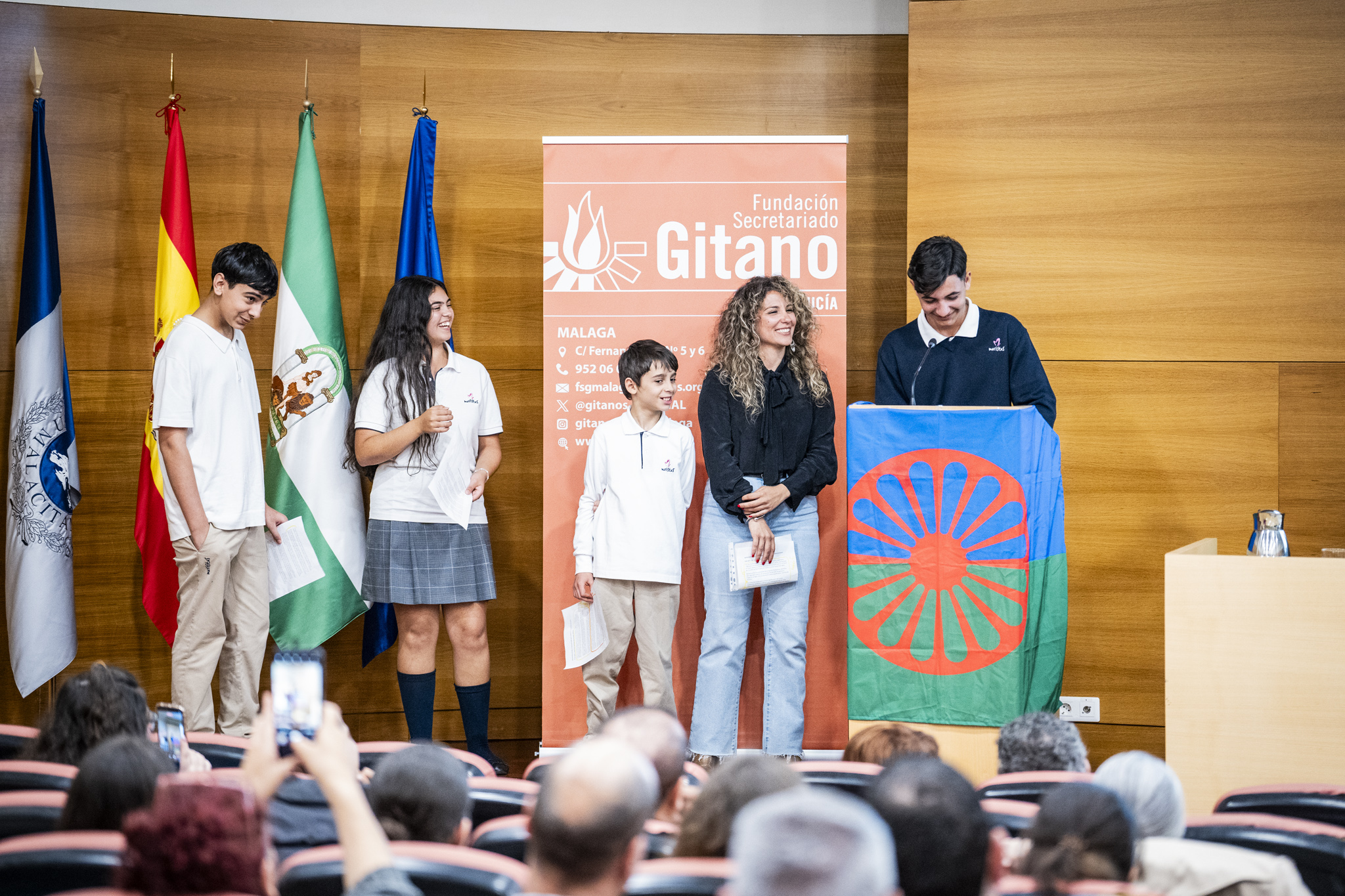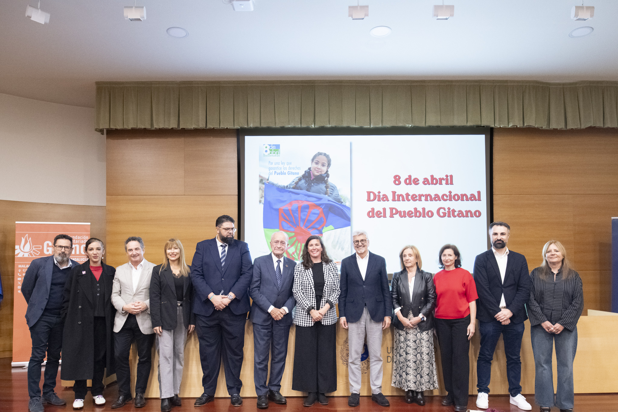 El acto, celebrado en el Rectorado de la UMA, ha consistido en la lectura de un manifiesto y la interpretación del himno ‘Gelem Gelem’. También han estado presentes la coordiandora de la Fundación Secretariado Gitano, Tamara Esteve; la vicerrectora de Igualdad y Política Social de la UMA, María José Berlanga; y la delegada territorial de Inclusión Social de la Junta de Andalucía, Ruth Sarabia.