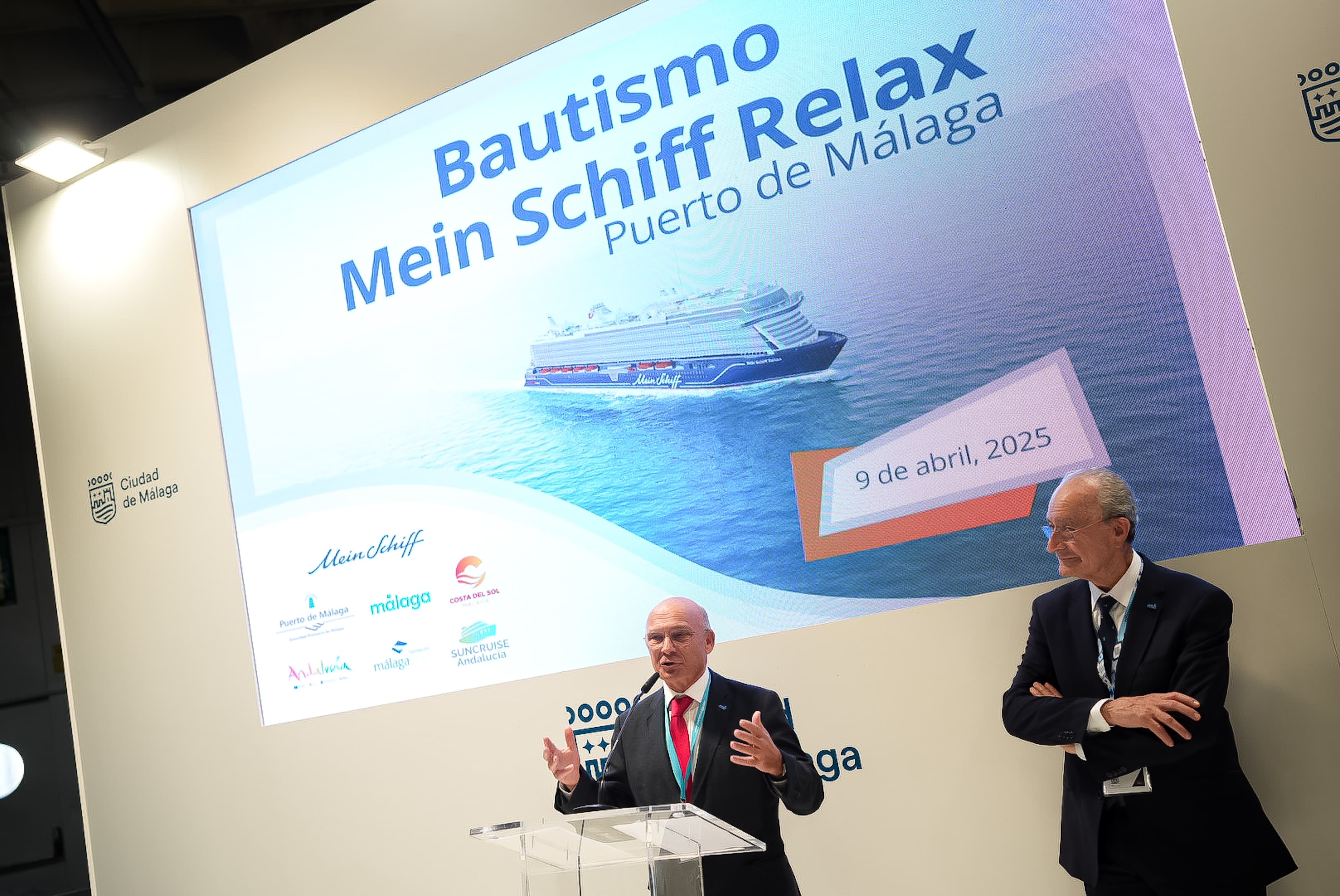 El alcalde ha asistido a la presentación del bautismo del buque ‘Mein Schiff Relax’ de la línea TUI. A dicho acto han asistido el alcalde de Málaga, Francisco de la Torre, el presidente de la Autoridad Portuaria de Málaga, Carlos Rubio, el presidente de la Diputación de Málaga, Francisco Salado, el presidente de Puertos del Estado, Álvaro Rodríguez Dapena, y la CEO de TUI Cruises, Wybcke Meier. La compañía TUI, dedicada al mercado alemán, ha elegido Málaga para la celebración de este evento en el mes de abril y participará como padrino el reconocido cantante Robbie Williams.