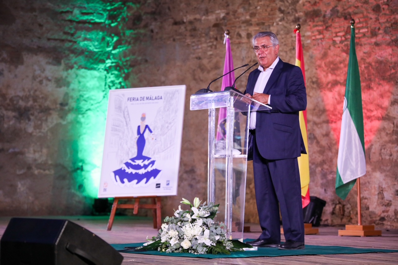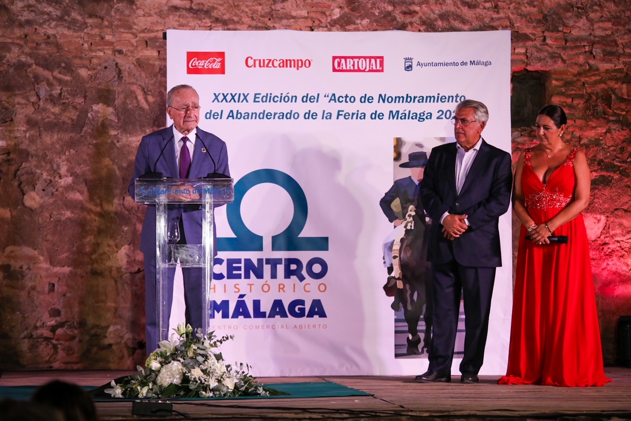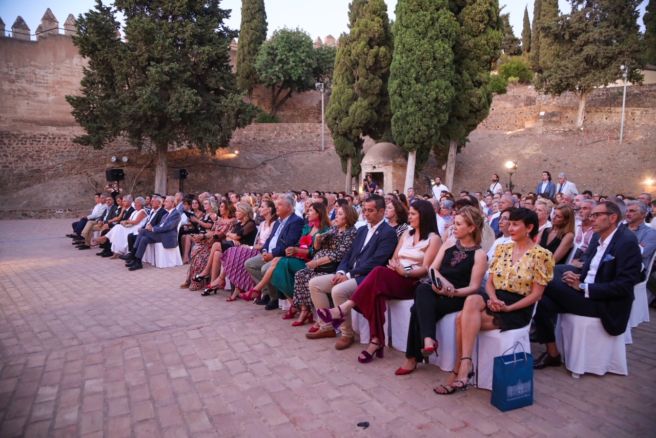 El alcalde de Málaga, Francisco de la Torre, junto a la edil de Fiestas, Teresa Porras, y miembros de la Corporación Municipal, ha asistido esta noche en el Castillo de Gibralfaro al XXXIX acto de nombramiento del abanderado de la Feria de Málaga de 2022, Rafael Prado, organizado por la Asociación del Centro Histórico.