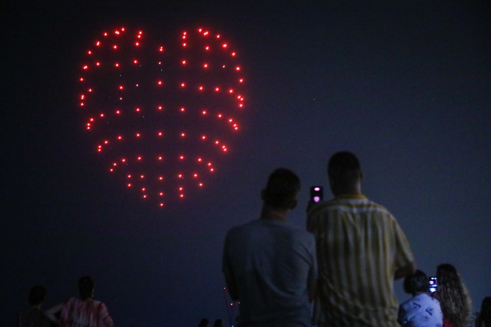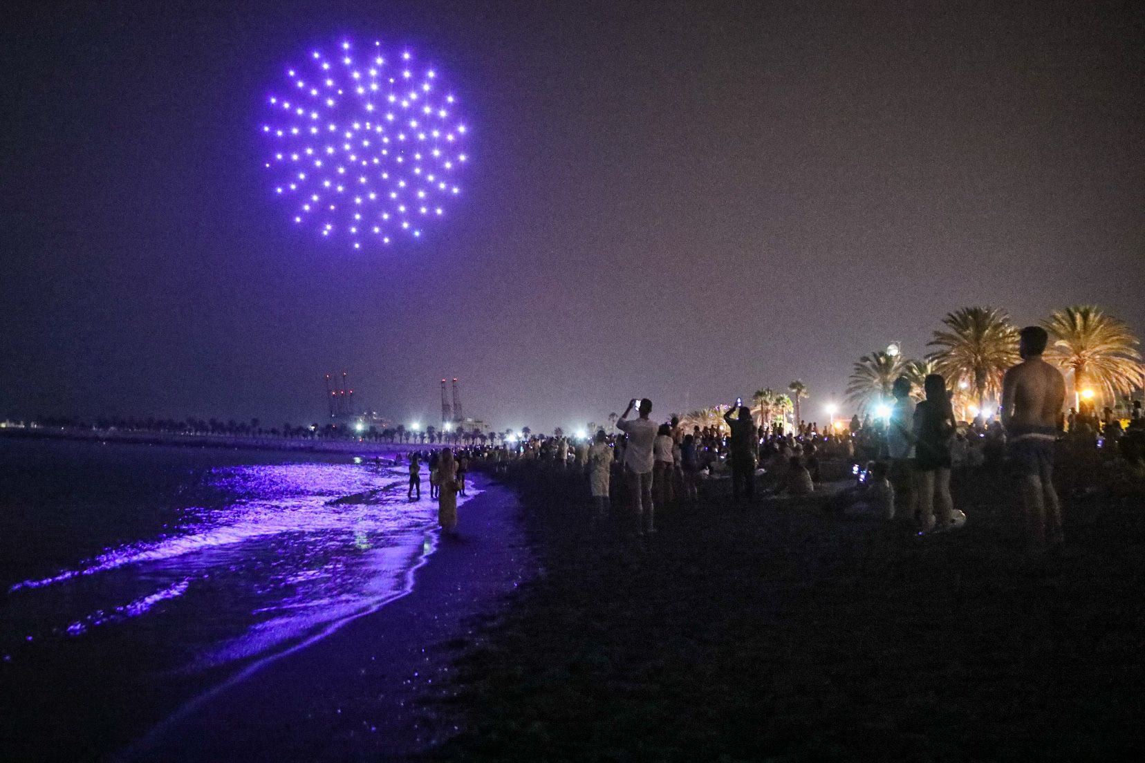 ‘Umiles - Drone light show’ presenta esta propuesta que señala va a ser la mayor concentración de drones operando al unísono que se produzca en España. Será un espectáculo luminoso en el que los drones dirigidos por especialistas dibujarán figuras de luz en el cielo malagueño. Es un espectáculo creado especialmente para Málaga denominado ‘Noche de Fiesta’, en el que participan dos pilotos al mando, un responsable técnico, tres observadores, un coordinador de operaciones y desarrollador de la coreografía. Habrá 120 drones en la zona de la playa de La Malagueta y otros 120, en la playa de Huelin.