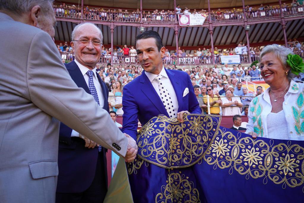 EL ALCALDE DE MÁLAGA ENTREGA A MANZANARES EL TROFEO CAPOTE DE PASEO EN LA PLAZA DE TOROS