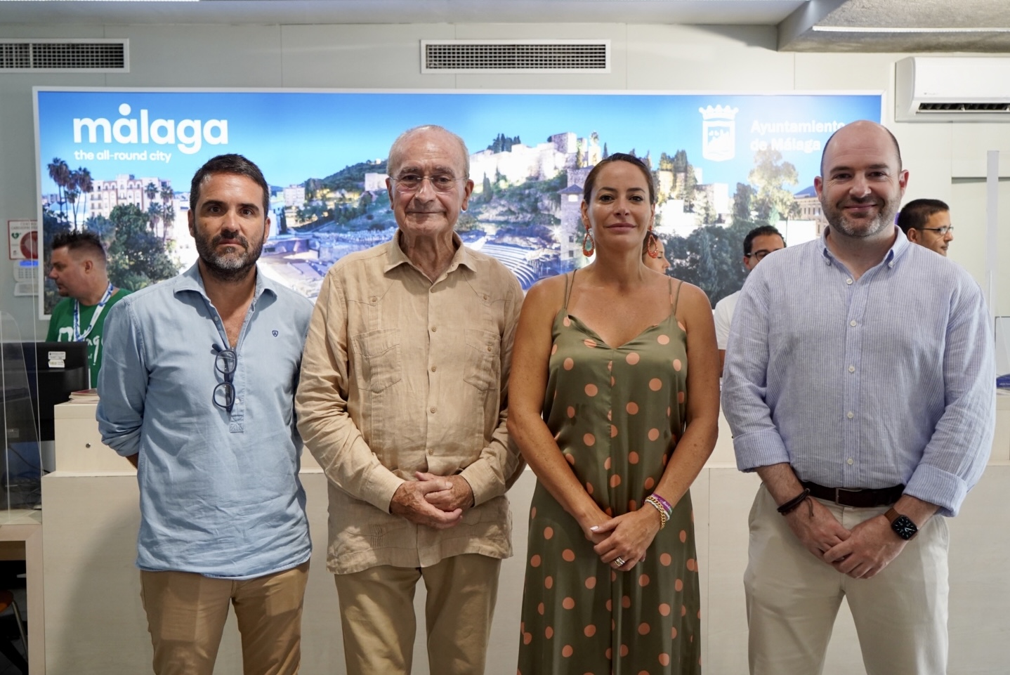 El alcalde de Málaga, Francisco de la Torre, acompañado de los ediles de Turismo y Promoción de la ciudad e Innovación y Digitalización Urbana, Jacobo Florido y Alicia Izquierdo respectivamente, ha visitado esta mañana la oficina de la Plaza de la Marina y ha dado a conocer los datos que se han registrado en las oficinas y puntos de información turística de la ciudad de Málaga durante el viernes y el sábado de Feria, que suman a un total de 7.369 visitantes, 3.736 de ellos de procedencia internacional y 3.633, nacional. Estos datos suponen en torno a un 37% más si se comparan con los mismos días, primer viernes y sábado, de la Feria de 2019, y un 5% respecto al pasado año 2022. Por mercados, en cuanto al internacional, lidera el mercado francés, seguido de los visitantes de Reino Unido y de Italia. Respecto a mercado nacional, destacan Madrid y Comunidad Valenciana.