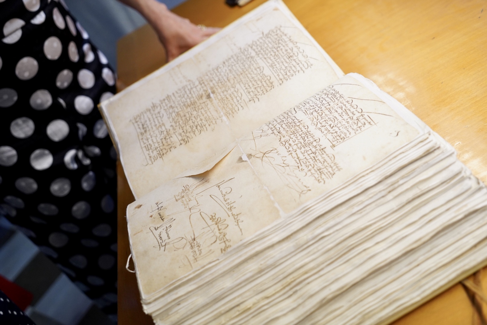 El alcalde de Málaga, Francisco de la Torre, acompañado de la concejala delegada de Cultura y Patrimonio Histórico, Mariana Pineda, y otros miembros del equipo de gobierno, ha visitado esta mañana la exposición del Archivo Municipal dedicada a la Feria. En su sala de lectura se expone el documento del acuerdo de pleno del año 1491, que supone la creación de la Feria de Málaga. También pueden verse dos ejemplares de su hemeroteca: un volumen de la “La Ilustración Española”, correspondiente al año 1887 con un grabado con la a la cabalgata histórica de ese año, y “El Expreso del siglo XV”, un número extraordinario publicado a finales del siglo XIX y que simula ser un periódico del 19 de agosto de 1487, fecha de la conquista de la ciudad por los Reyes Católicos. Igualmente, los visitantes pueden contemplar carteles de Feria de diferentes años, entre los que se incluyen algunos de siglo XIX y principios del XX.