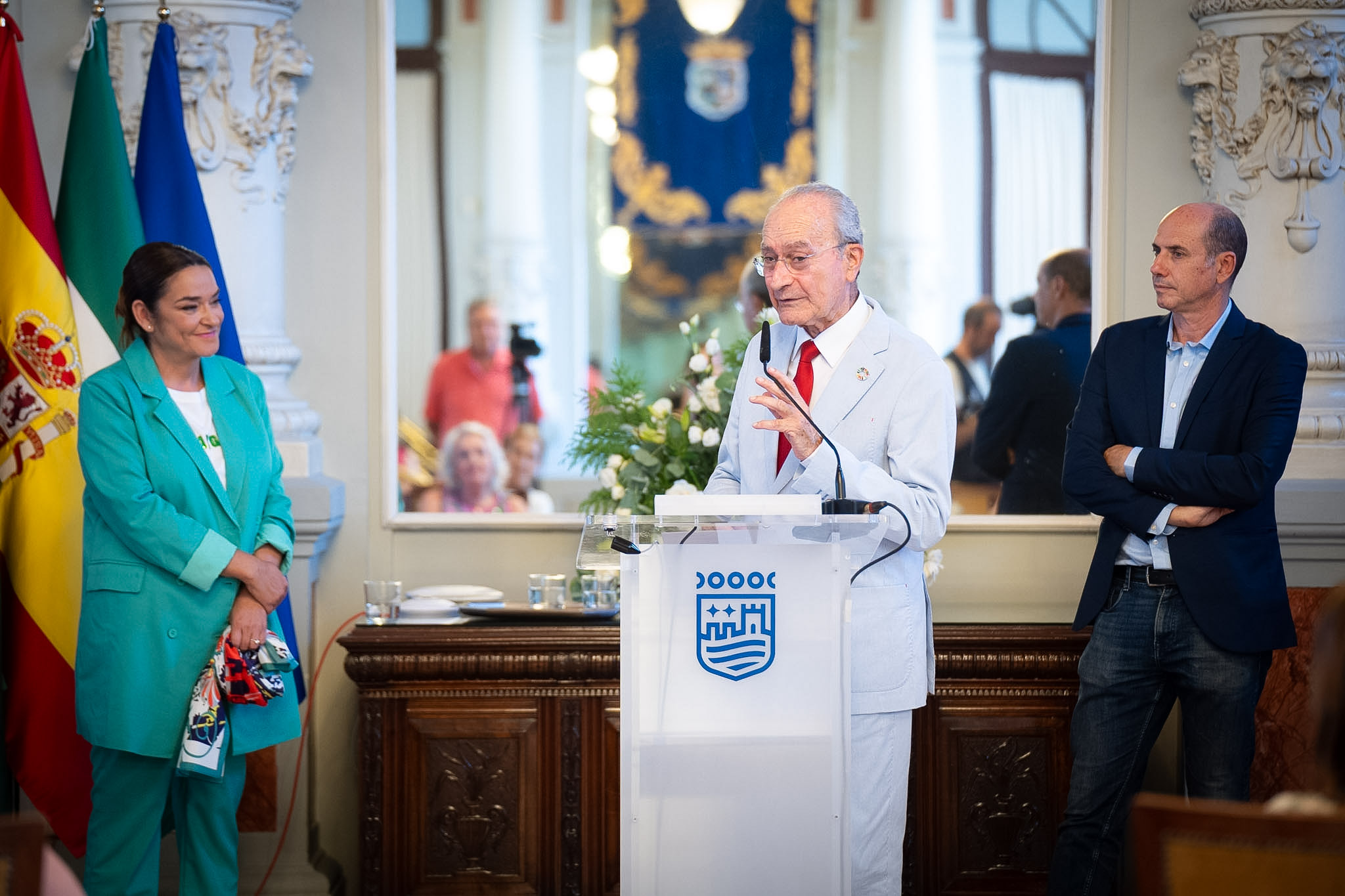La comunicación del nombre del abanderado en su XLII edición ha sido hoy en el Salón de los Espejos del Ayuntamiento de Málaga. Al acto ha asistido el alcalde de Málaga, Francisco de la Torre, junto a la concejala delegada de Fiestas, Teresa Porras, y el presidente de la Asociación Centro Histórico de Málaga, Rodrigo Bocanegra.