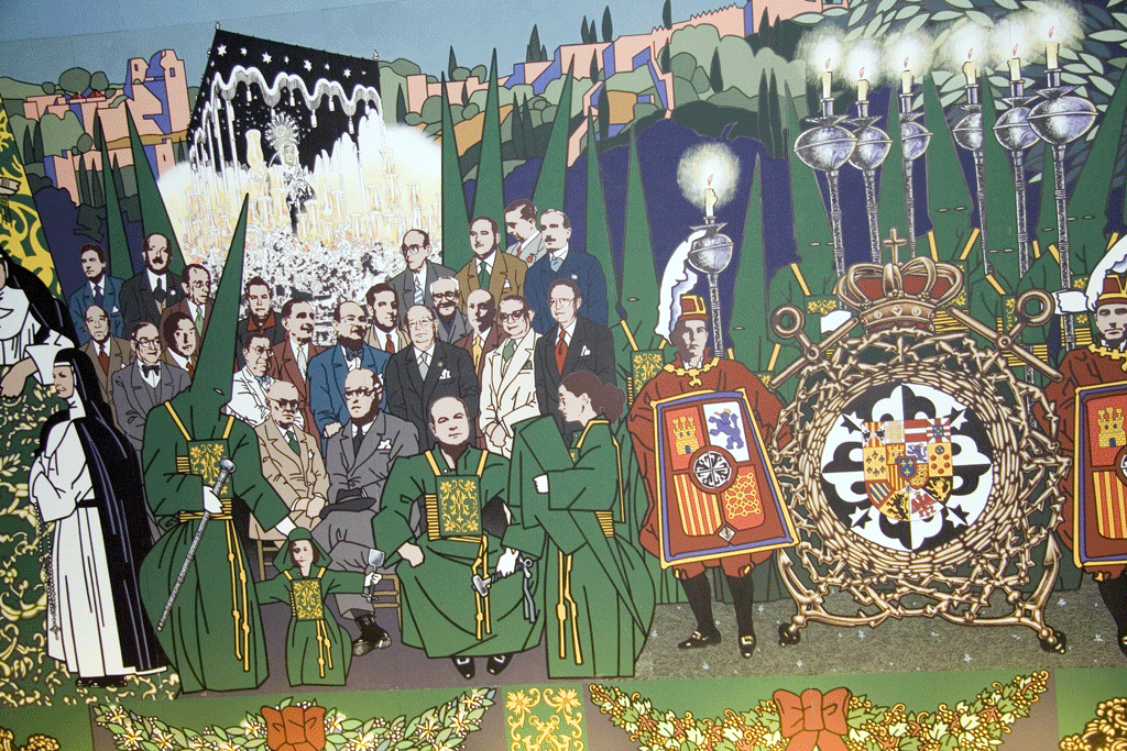 Una muestra de arte religioso que comprende pintura, talla, orfebrería y bordados se extiende en dos plantas con una superficie de 400 m2. Destacan el fresco ¿La Pasión según San Juan¿, obra neocubista de Rodríguez-Acosta; y el monumental mural que cubre el techo y relata la historia de la Archicofradía con un lenguaje expresivo popular, pintado por Eugenio Chicano en 2002.
