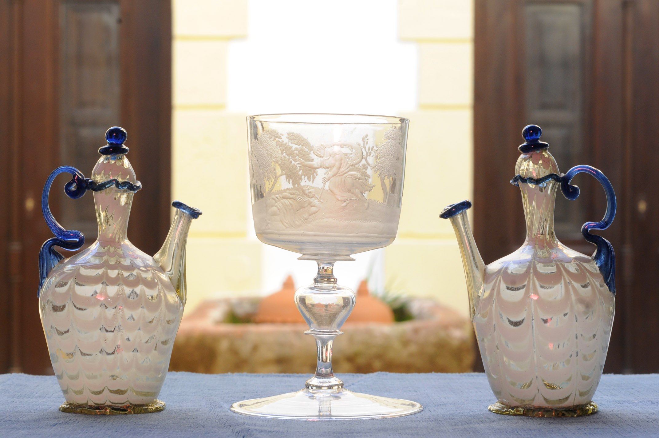 En pleno centro histórico, en el encantador entorno barroco de la iglesia de San Felipe Neri y compartiendo su recoleta plazuela, se encuentra el Museo del Vidrio y Cristal de Málaga, en una antigua casona construida en 1761 y que hoy, cuidadosamente rehabilitada, todavía conserva en su fachada las elegantes y originales pinturas murales que tanto caracterizaron el urbanismo malagueño durante todo el siglo XVIII. Dentro de este singular edificio, ejemplo de la arquitectura doméstica de la ciudad durante los años de la Ilustración, también nos podemos sumergir en la historia de la humanidad a través del hilo conductor de la industria del cristal. Se trata de una colección privada formada por tres mil piezas, de las que mil se mantendrán en exposición permanente y el resto en rotación. Los fondos del museo contienen piezas de vidrio de numerosas épocas y culturas, que están expuestas acompañadas por obra pictórica, mobiliario y otros objetos de decoración que corresponden a cada periodo histórico al que representan, recreando un ambiente que nos devuelve al contexto cotidiano en que vivieron los dueños de estos objetos. El museo cuenta con once salas ordenadas alrededor de tres patios interiores que dan acceso a una visita cronológica desde la época clásica hasta nuestros días. El recorrido comienza con piezas egipcias del siglo VI antes de Cristo, que comparten sala con el vidrio fenicio, griego, romano, bizantino, medieval e islámico, concretamente algunas garrafas de los siglos XI y XII proceden de Irán. Otra sala tiene como protagonista elementos del siglo XVI y XVII, como una pareja de vinagreras de vidrio catalán, diversas copas venecianas y una bellísima copa belga, al gusto veneciano, grabada con la leyenda mitológica de Piramos y Cisbes. Copas, jarras, espejos, lámparas de araña, gran parte realizadas en cristal inglés y español de La Granja, forman parte de la representación del siglo XVIII. Por último, en representación del periodo del siglo XIX hasta nuestros días, podrá admirar ejemplo de cristalerías austríacas, bohemias, camafeos ingleses y franceses y una interesante colección de vidrieras de la escuela pre-rafaelista de gran valor artístico. Exposición permanenente de Gonzalo Fernández-Prieto.